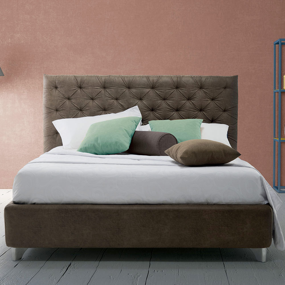 amplas possibilidades de customização, tanto no que diz respeito às medidas quanto ao tipo de revestimento. Na verdade, está disponível uma vasta coleção de tecidos, couros e couros ecológicos para escolher. A cama também pode ser adquirida na versão sem recipiente. Para aconselhamento e/ou orçamentos personalizados,