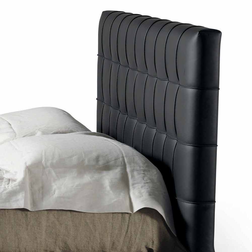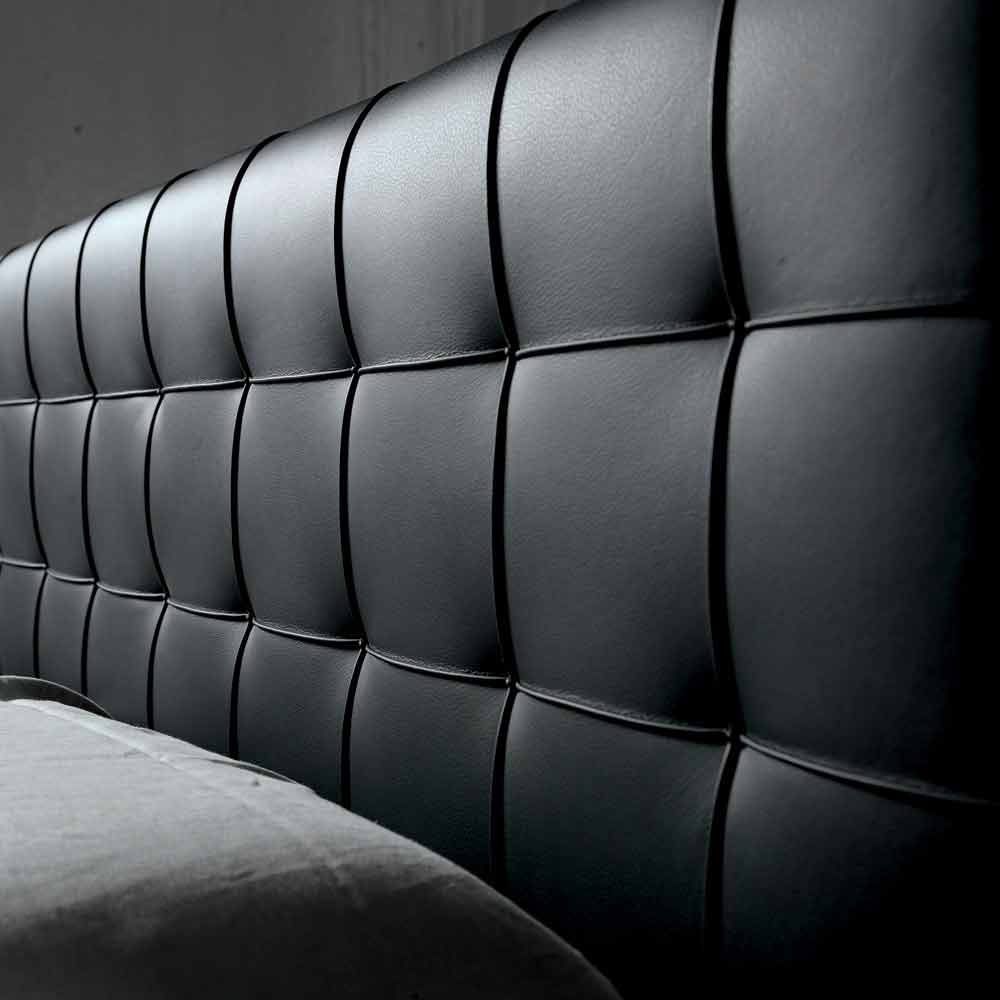 A cabeceira capitonnè, estofada em couro de alta qualidade, realça a sólida estrutura de nogueira da cama, para um resultado estético elegante e evocativo.