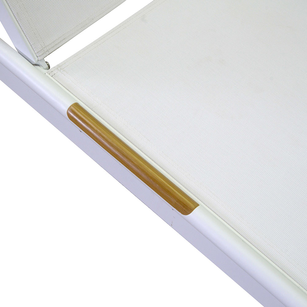 O design elegante e minimalista é acentuado com acentos de madeira de poliéster nos apoios de braços, adicionando um toque de calor e sofisticação. Com as suas linhas limpas e cor neutra, encaixa-se perfeitamente em qualquer ambiente ao ar livre, da piscina ao pátio.
