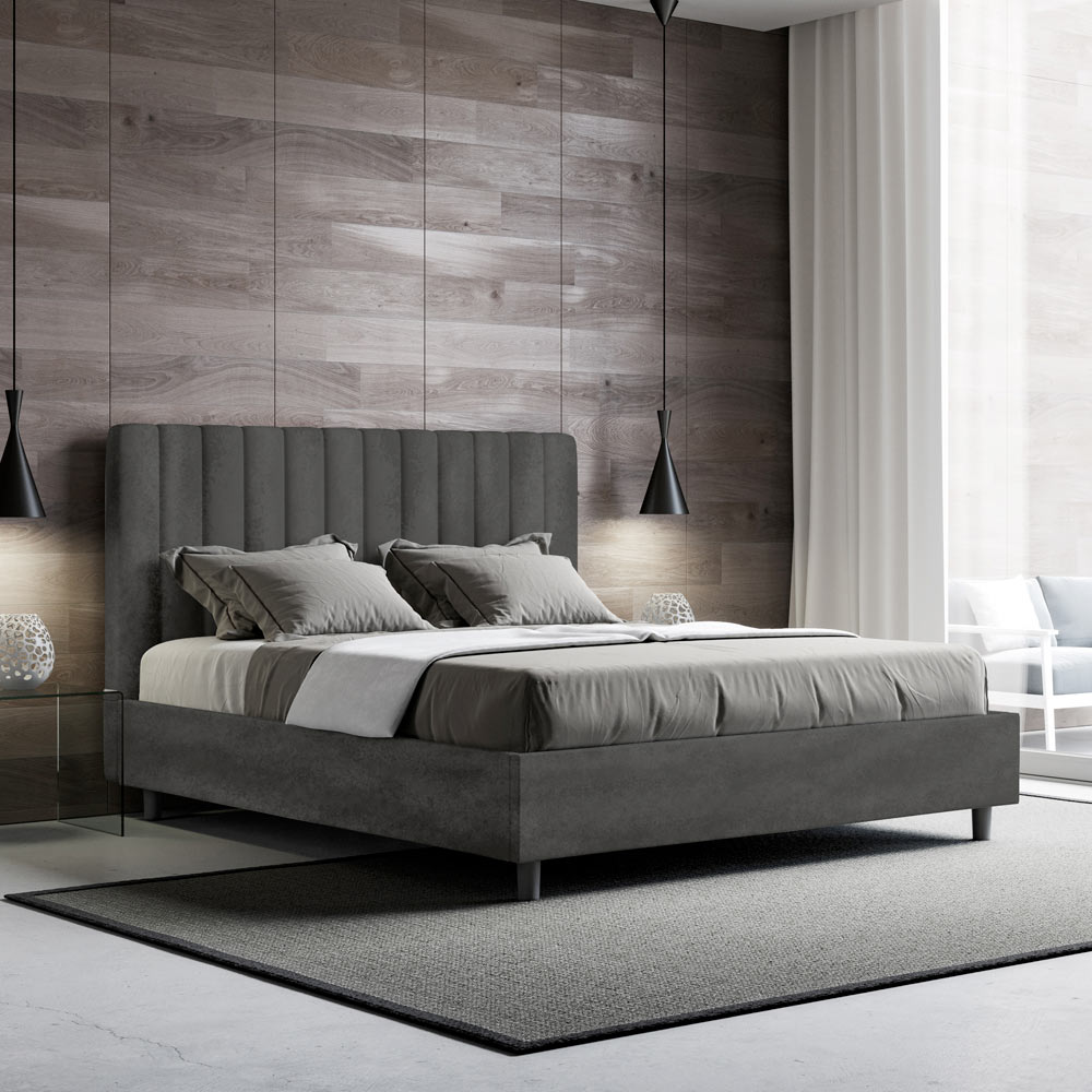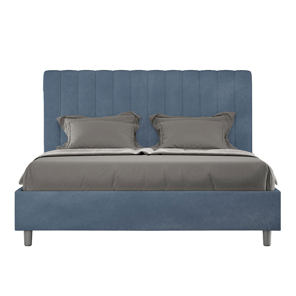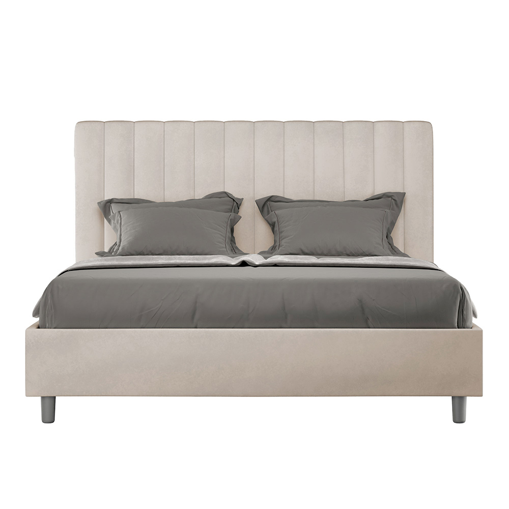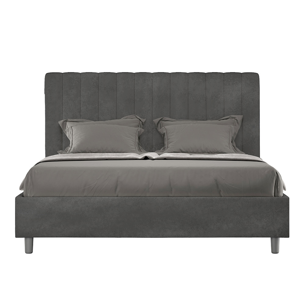 Cama de casal estofada de 160x200 cm, feita de painéis de aglomerado e revestida em microfibra , inteiramente fabricada na Itália. Esta cama de casal com estrutura estofada é ideal para quem busca uma peça marcante sem ser exagerada. A cabeceira minimalista apresenta um delicado efeito acolchoado com linhas verticais simétricas , que se integra perfeitamente a qualquer ambiente, seja moderno ou clássico.