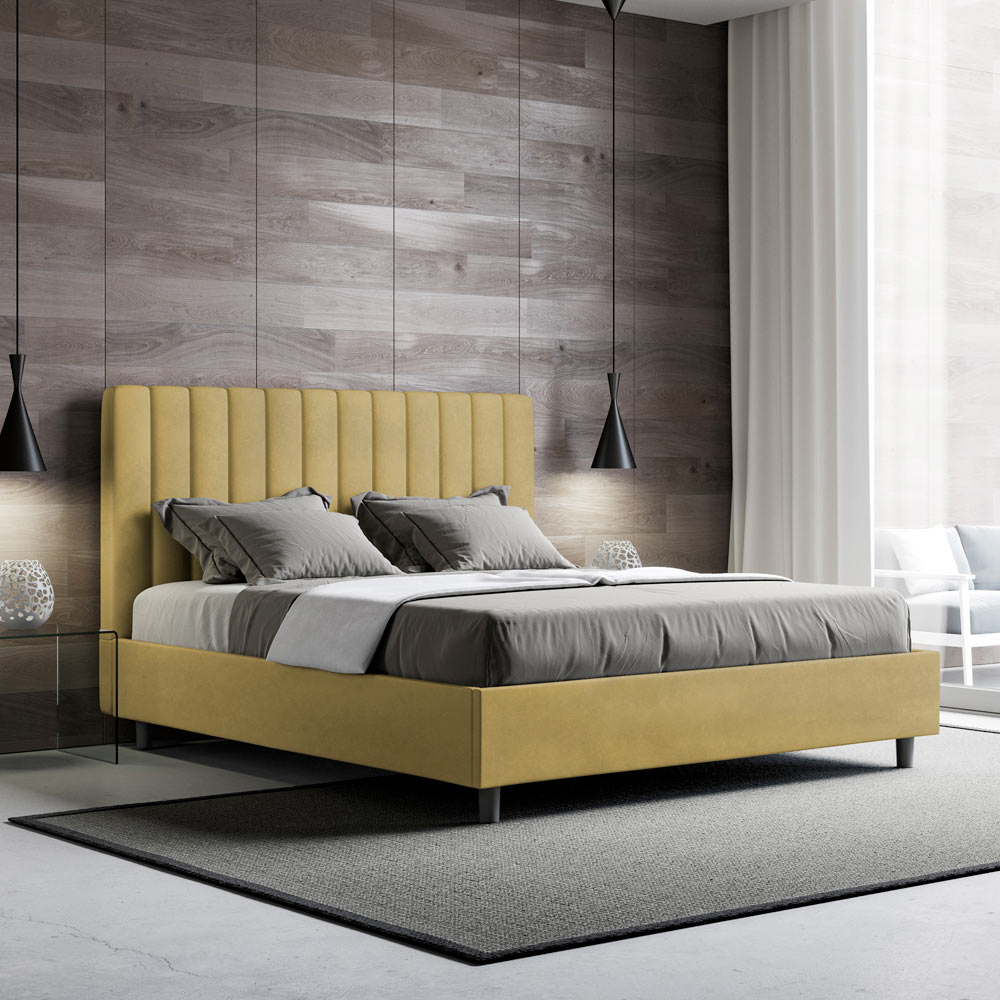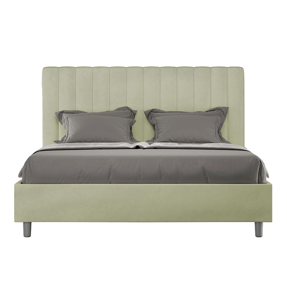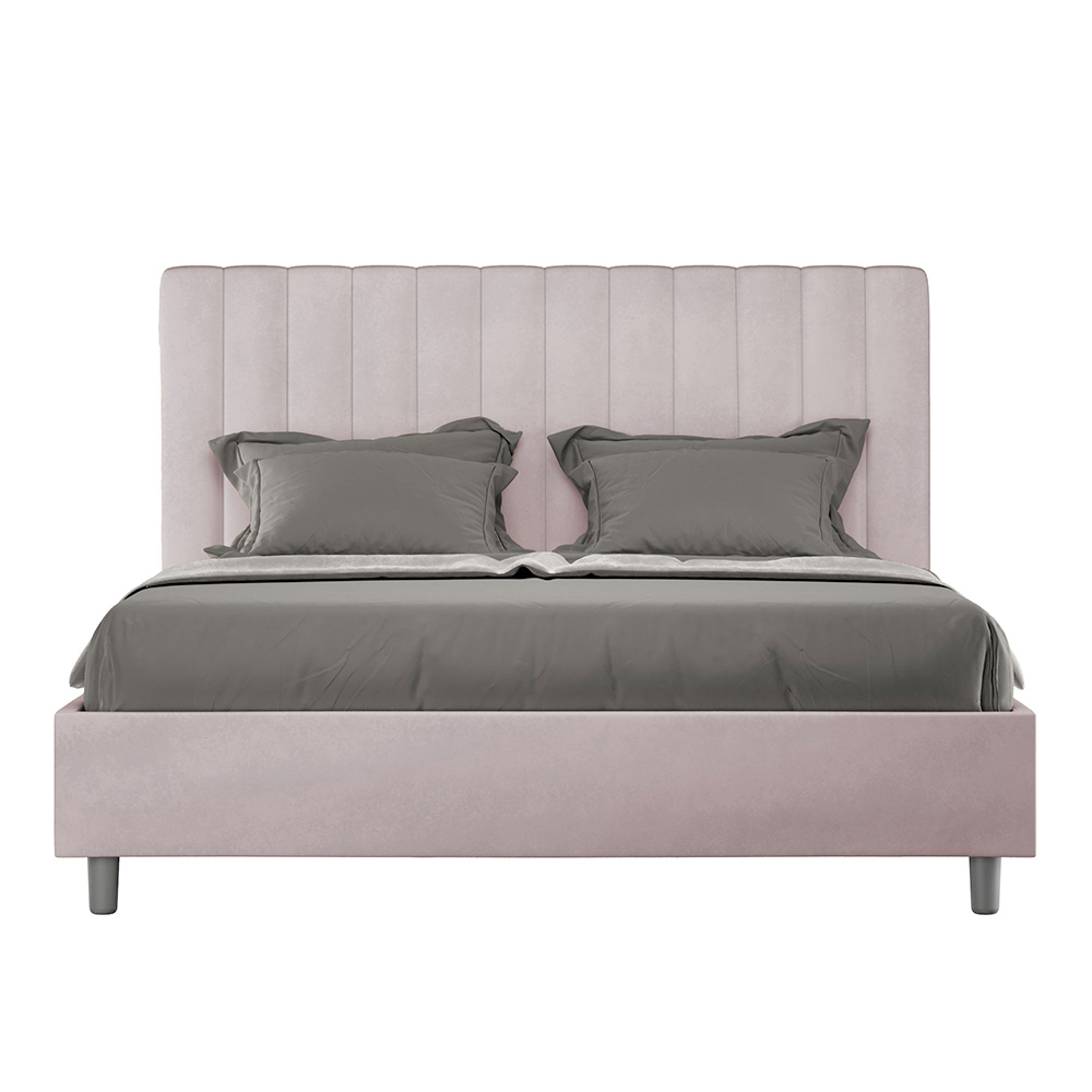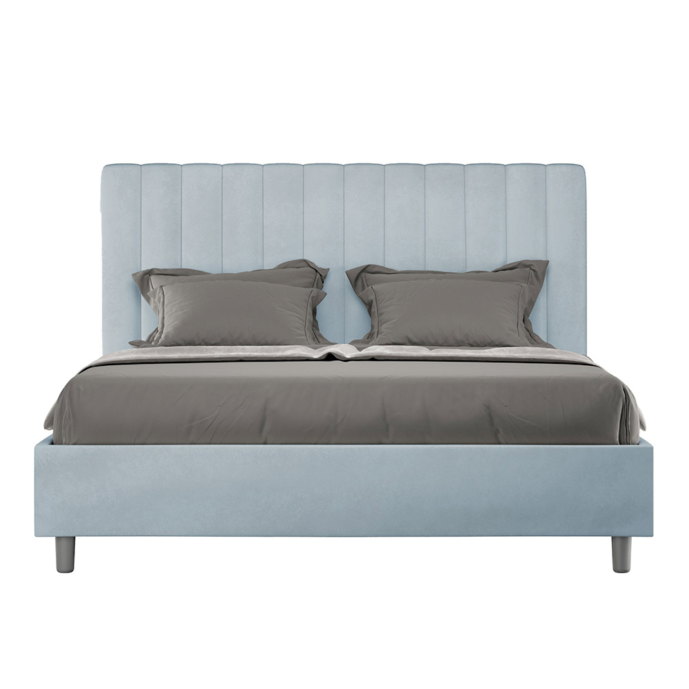 Cama de casal estofada de 160x200 cm, feita de painéis de aglomerado e revestida em microfibra , inteiramente fabricada na Itália. Esta cama de casal com estrutura estofada é ideal para quem busca uma peça marcante sem ser exagerada. A cabeceira minimalista apresenta um delicado efeito acolchoado com linhas verticais simétricas , que se integra perfeitamente a qualquer ambiente, seja moderno ou clássico.