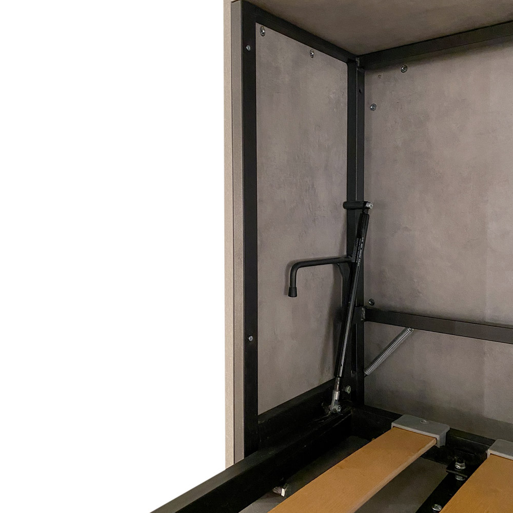 A cama Murphy é entregue desmontada. A montagem é muito complexa e requer duas pessoas experientes. A instalação na parede é obrigatória. Para obter informações, entre em contato conosco usando o formulário "