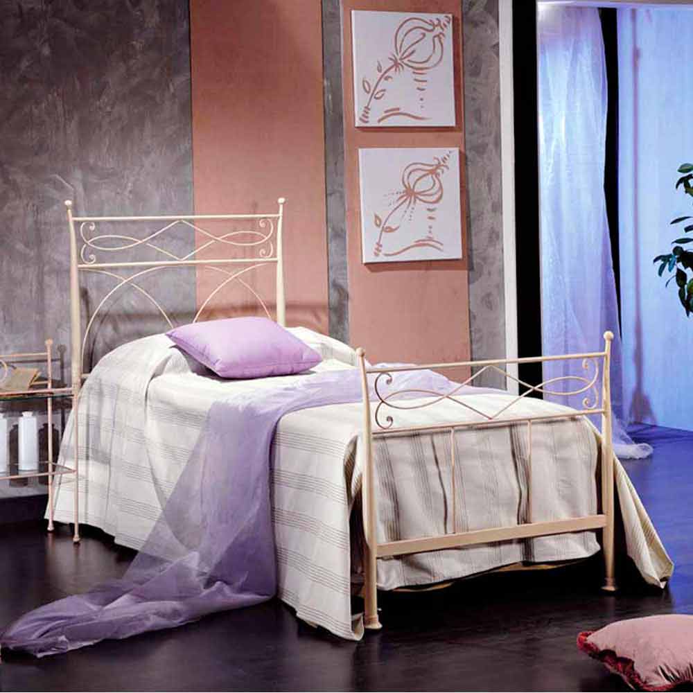 Cama de solteiro de ferro forjado Ambra, feito à mão na Itália, design clássico, adequado para uma base de cama de 85x190 cm