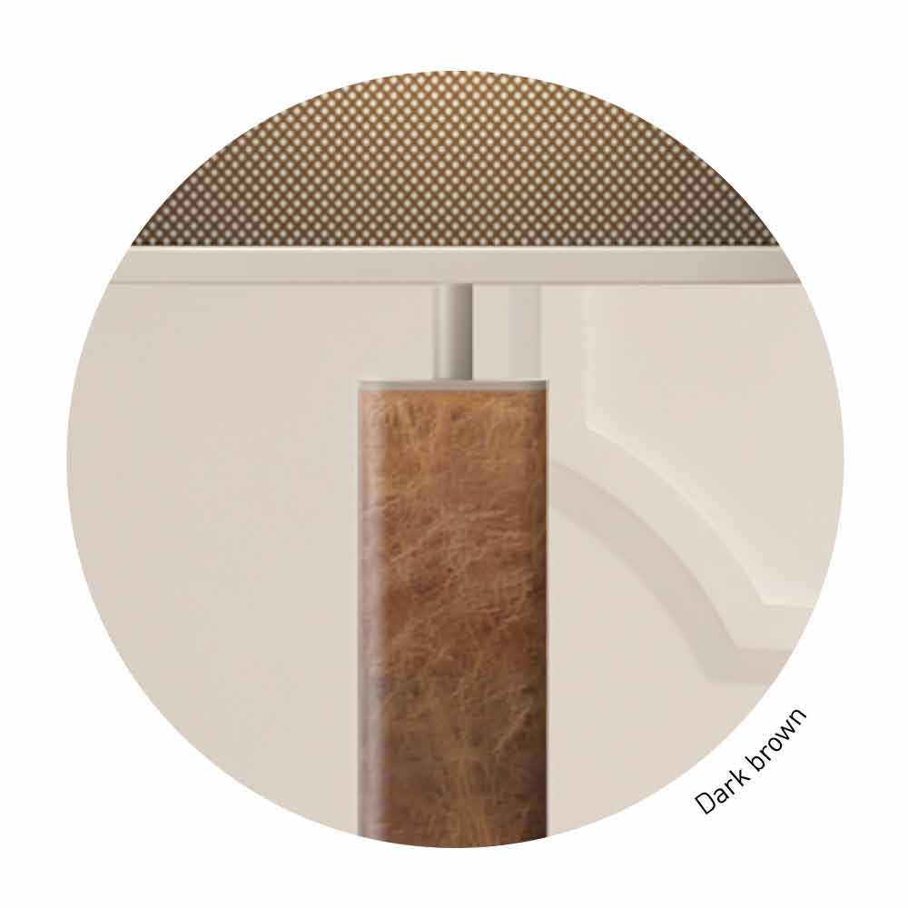 - metal branco brilhante, couro de ouro puro e linho branco.