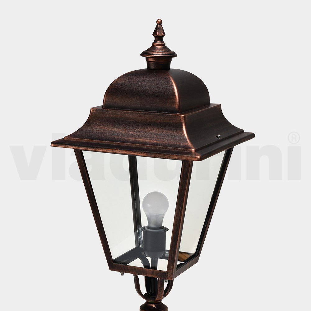 Candeeiro de pé exterior em alumínio e vidro transparente Fabricado na Itália.