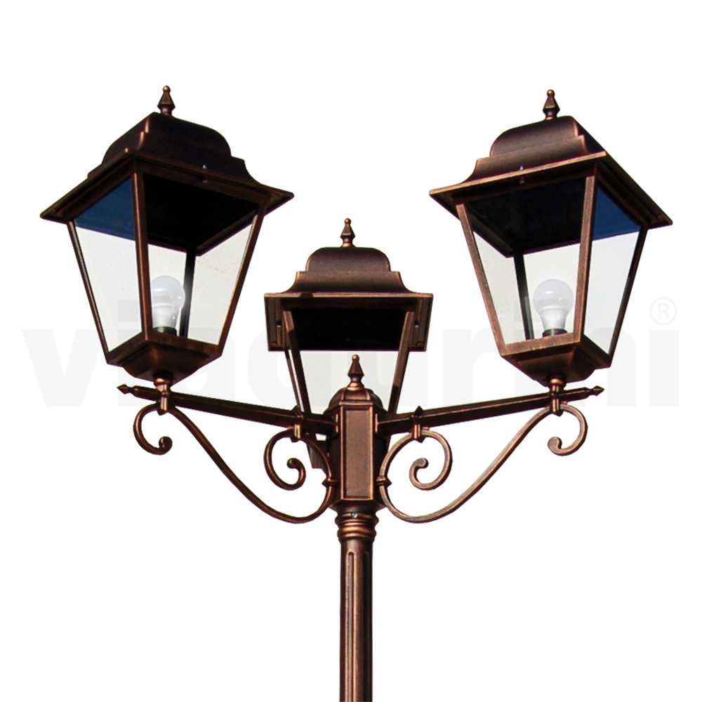 Incorpore um toque de elegância clássica ao seu espaço exterior com este candeeiro de rua. Fabricado em alumínio fundido robusto , destaca-se pela sua durabilidade excepcional e pela capacidade de resistir aos elementos com elegância. O acabamento valoriza qualquer jardim ou calçada, espalhando um calor visual tão acolhedor quanto charmoso. As 3 cúpulas superiores e o vidro unem-se para criar uma distribuição ideal da luz, enquanto os detalhes trabalhados conferem à peça um carácter distinto e um encanto antigo. Quer seja posicionado ao longo de um caminho romântico no jardim ou como ponto de boas-vindas à entrada, este poste não é simplesmente um elemento funcional, mas um verdadeiro símbolo de estilo e qualidade.