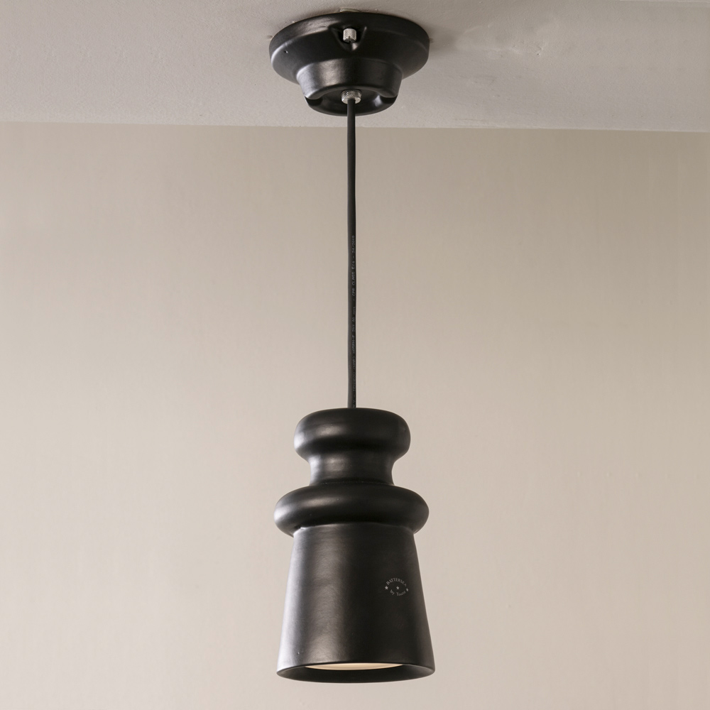 Candeeiro suspenso para exterior em faiança artesanal em Itália.
