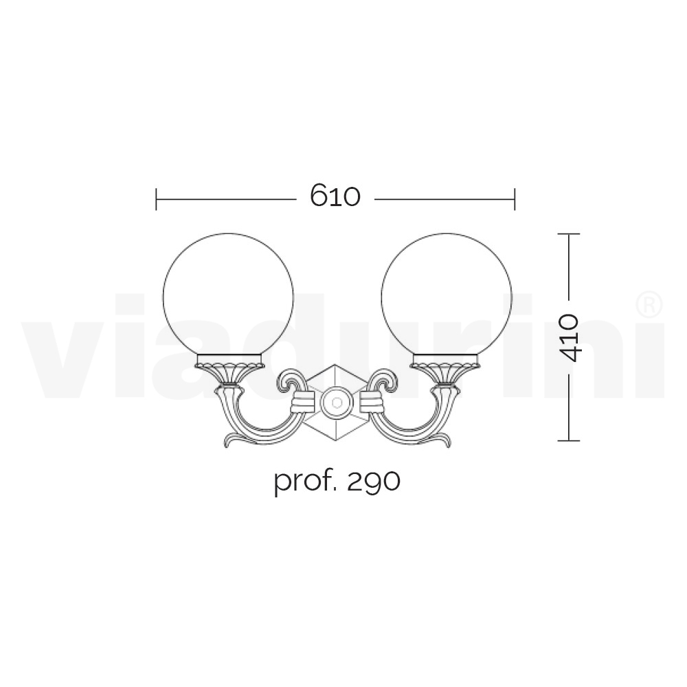 Aplique exterior em alumínio fundido com 2 difusores acrílicos
