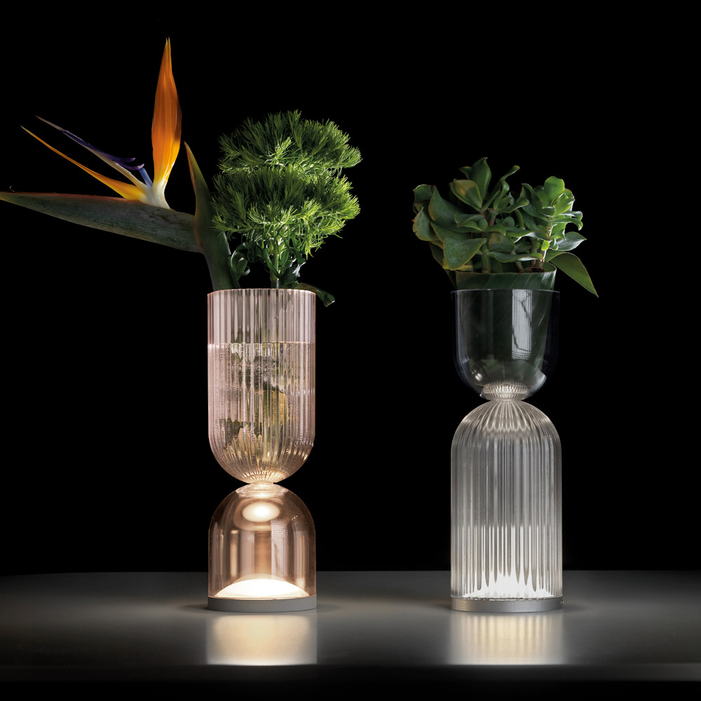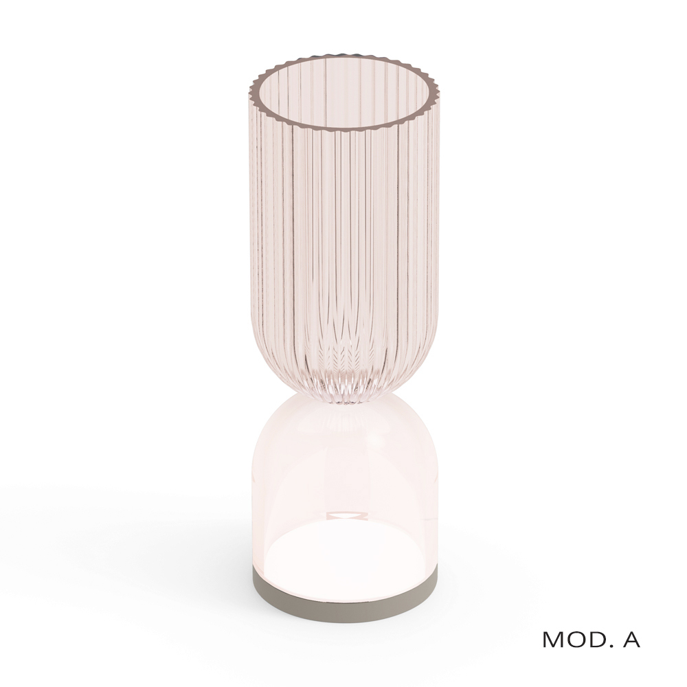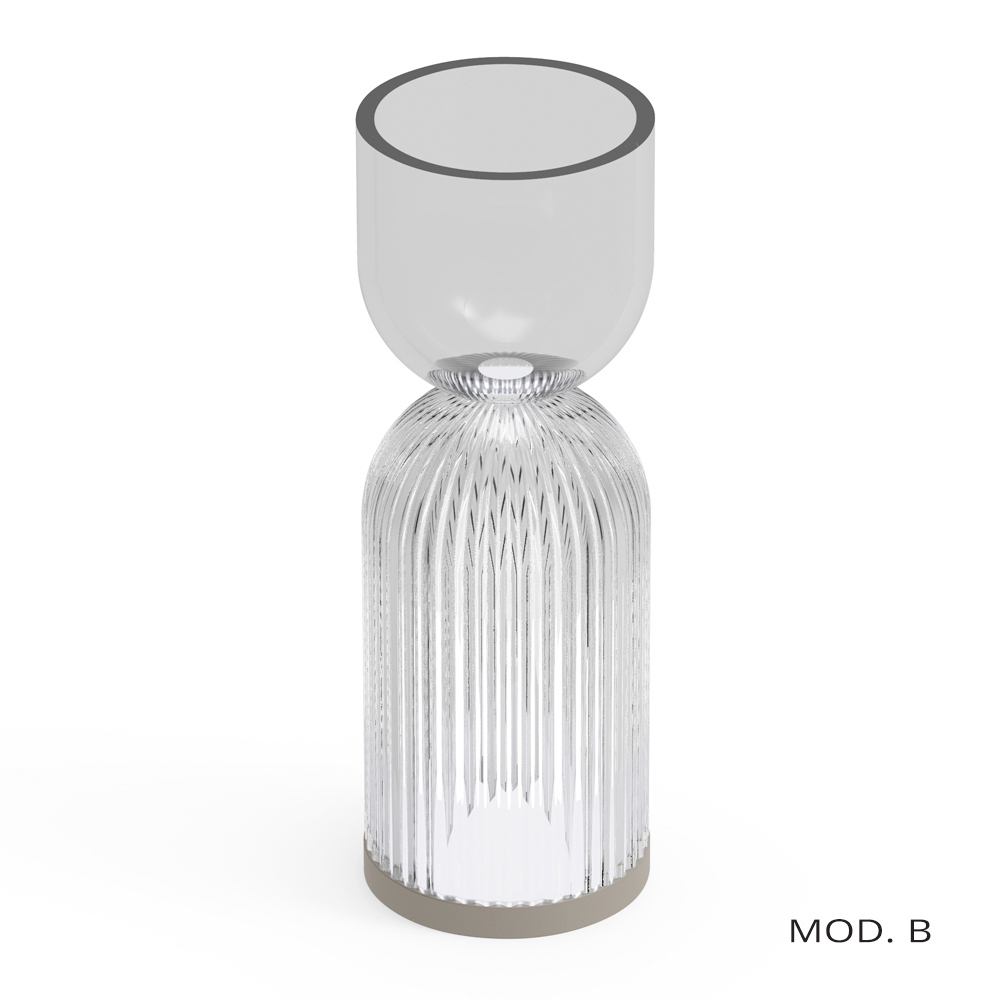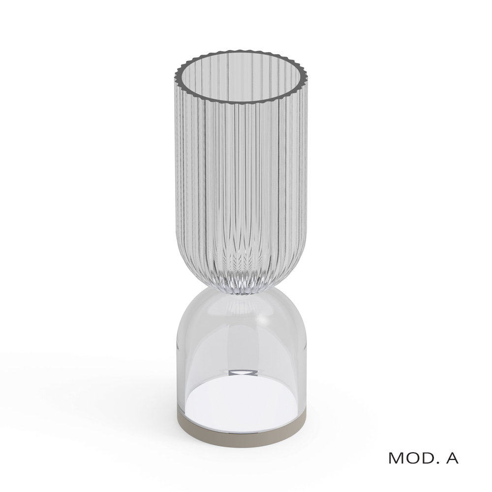 Esta lâmpada é uma fusão impressionante de design moderno e elegância clássica. A estrutura é metade em polimetilmetacrilato trabalhada com delicadas incisões verticais , que criam um efeito visual fascinante quando a lâmpada é acesa, projetando um jogo de luz e sombra que enriquece qualquer ambiente.