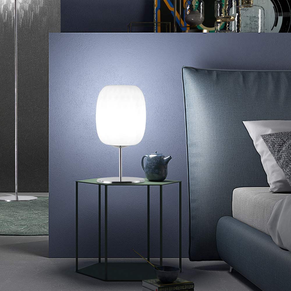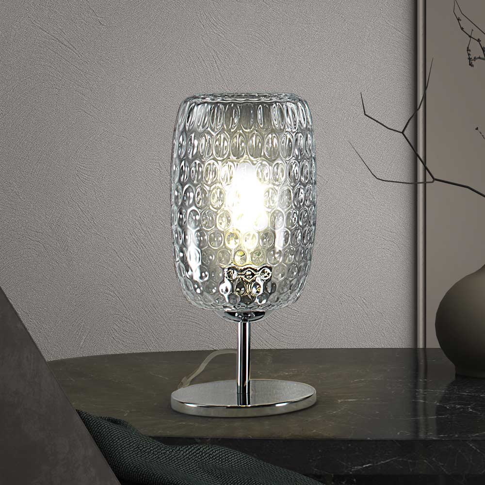 Candeeiro de mesa em vidro Veneza soprado à mão trabalhado na técnica Balloton.
