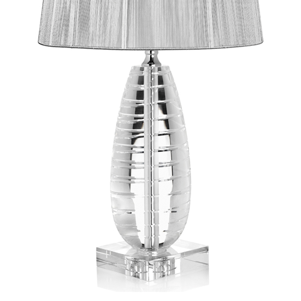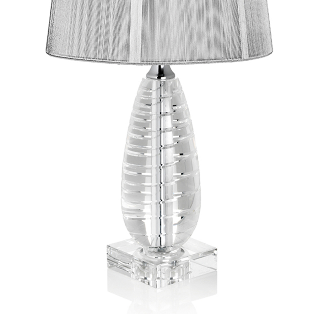 Candeeiro de mesa clássico de cristal com abajur cilíndrico de luxo.