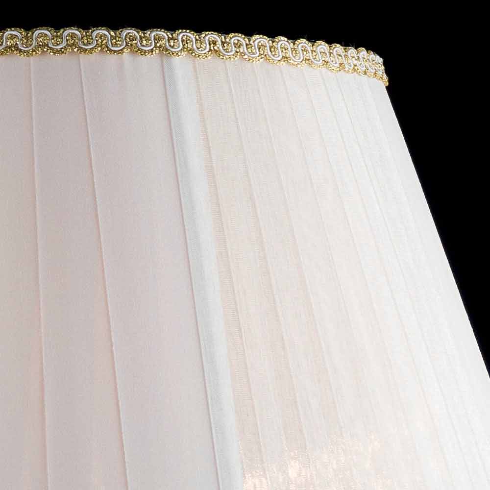 Candeeiro de design em vidro âmbar e cristal com acabamento dourado. Abajur em organza e pongè.