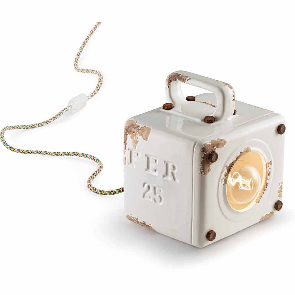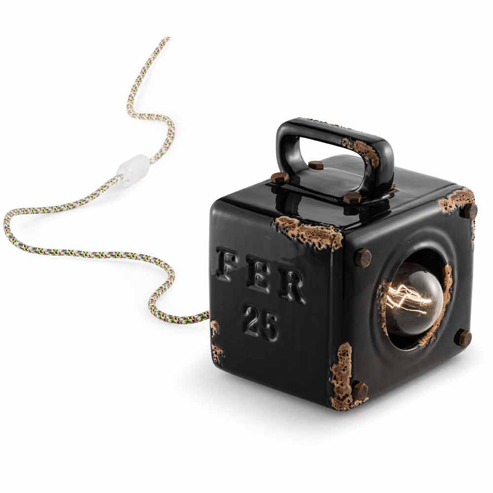 Valerie é um candeeiro de mesa fantástico, com formato cúbico e estilo vintage-industrial, feito à mão por artesãos qualificados na Itália.