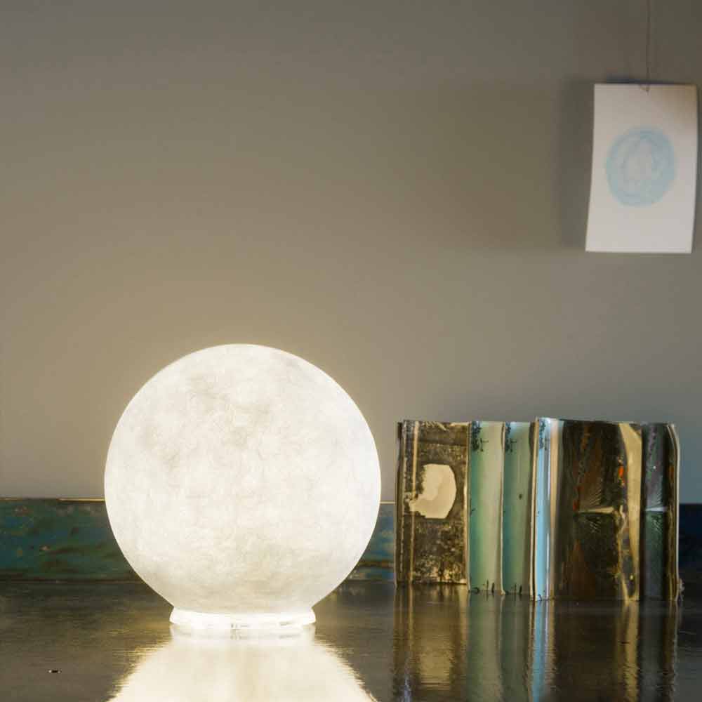 T.moon é o candeeiro de mesa ultramoderno da coleção Luna by collection In-es.artdesign que é capaz de reproduzir a atmosfera mágica da lua, graças ao material inovador com o qual é feito: o Nebulite® , um material composto de resina e fibra, cujas veias dão a lâmpada este particular "lunar" efeito.