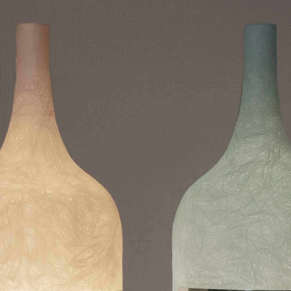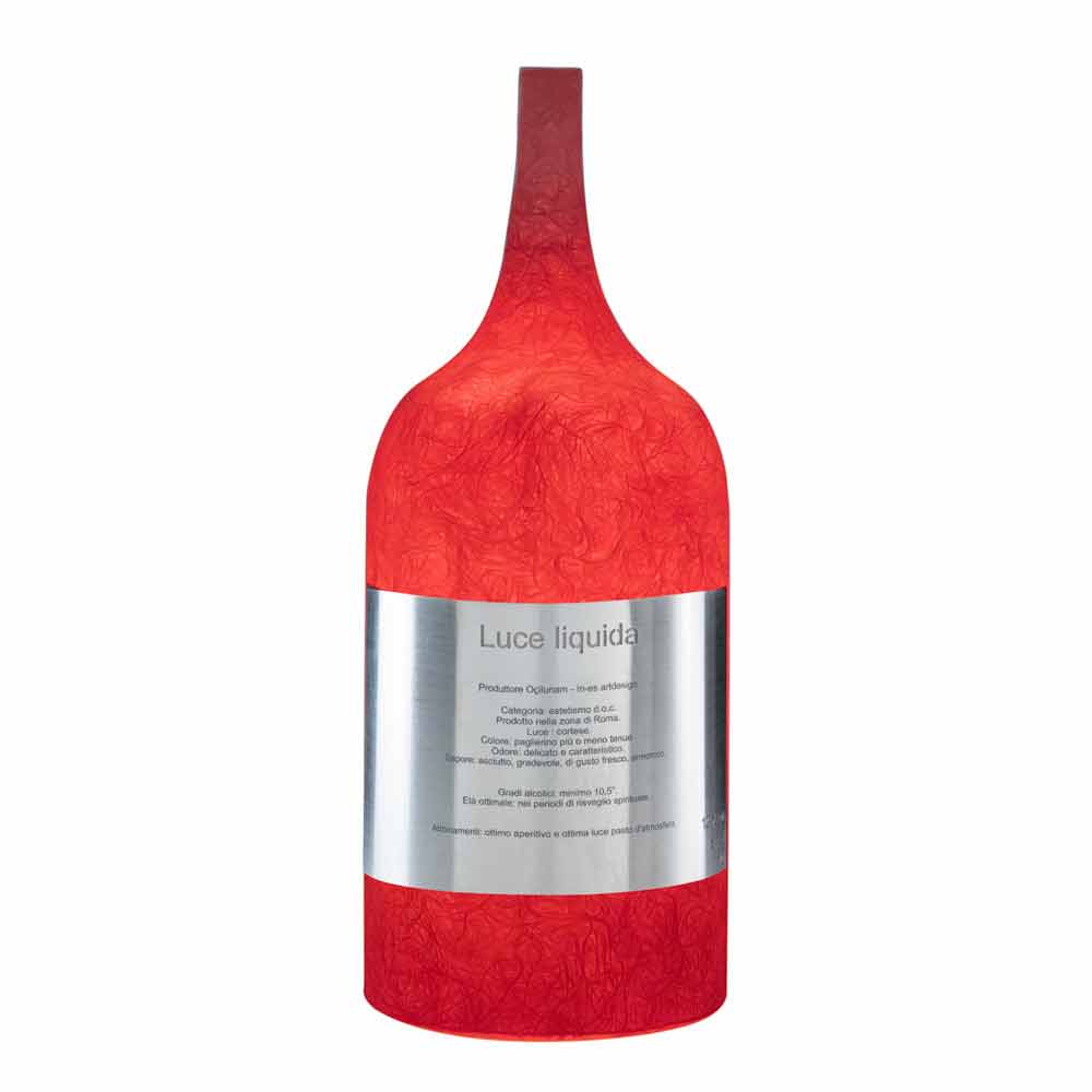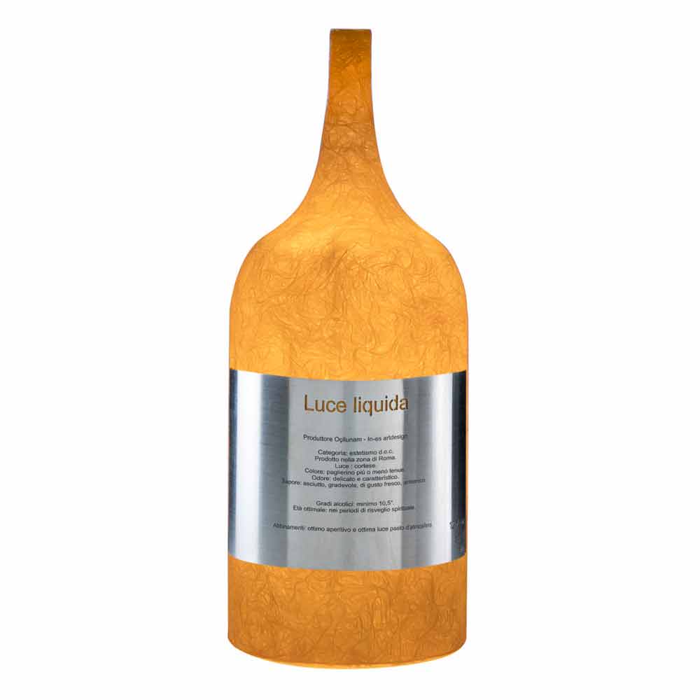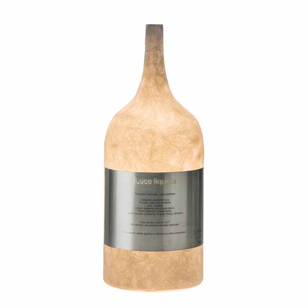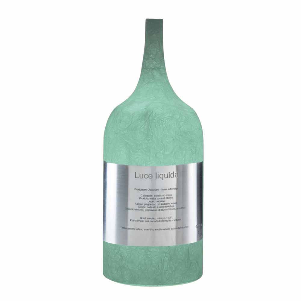 O candeeiro de mesa Luce Liquid 1 é famoso pela beleza da sua luz fina encerrada na garrafa.