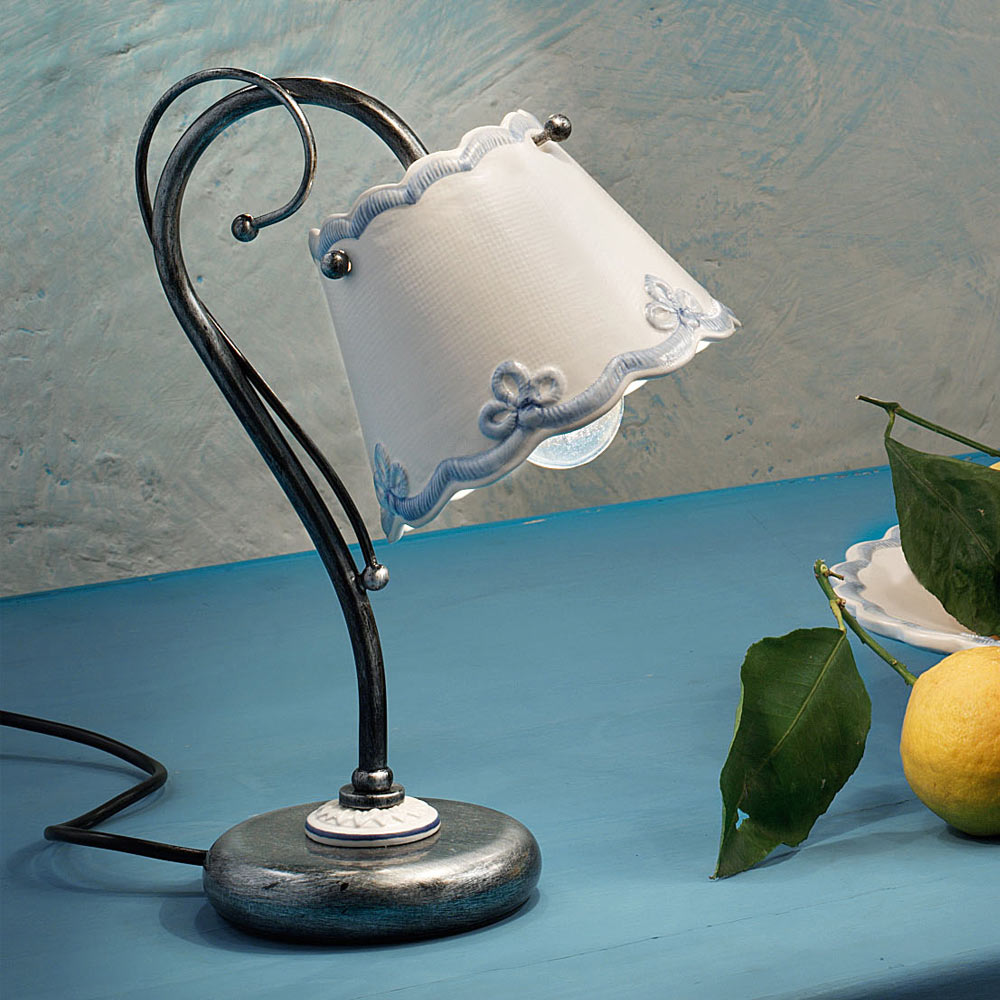 Candeeiro de apoio artesanal em metal e cerâmica com efeito bordado feito na Itália pela Ferroluce.