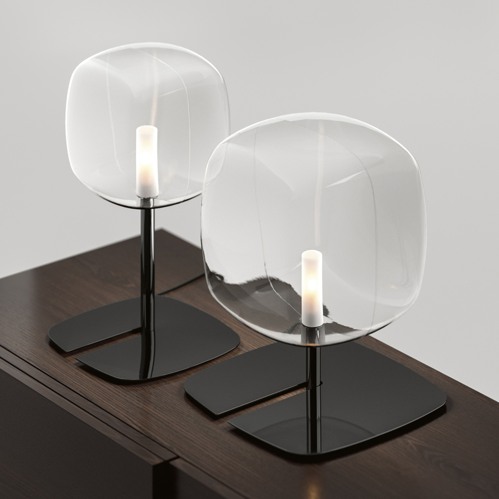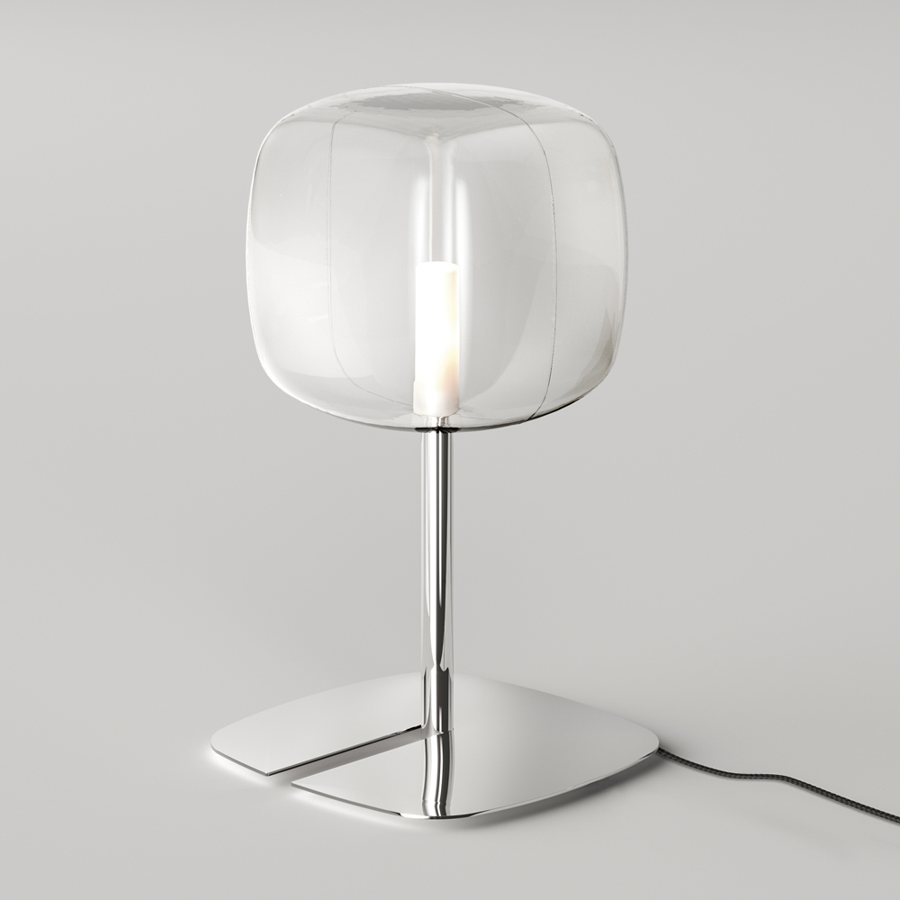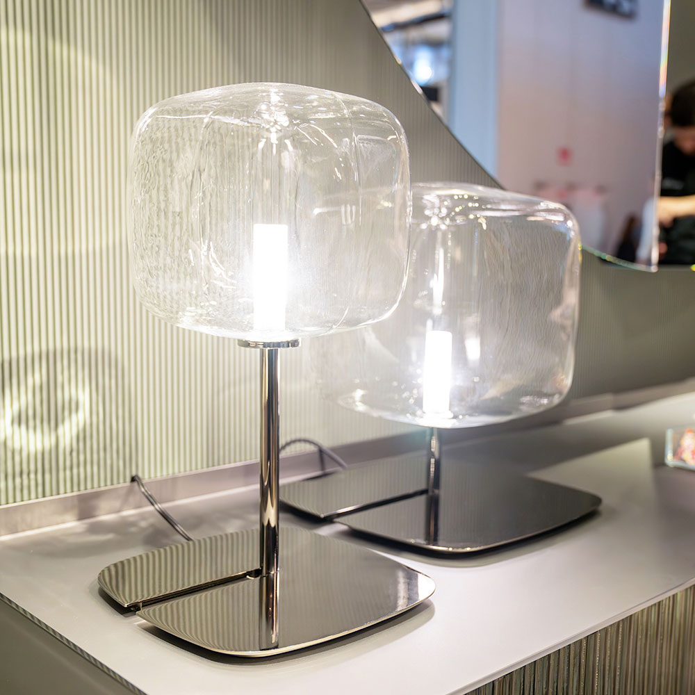 Candeeiro de mesa LED em vidro transparente e metal Fabricado na Itália.