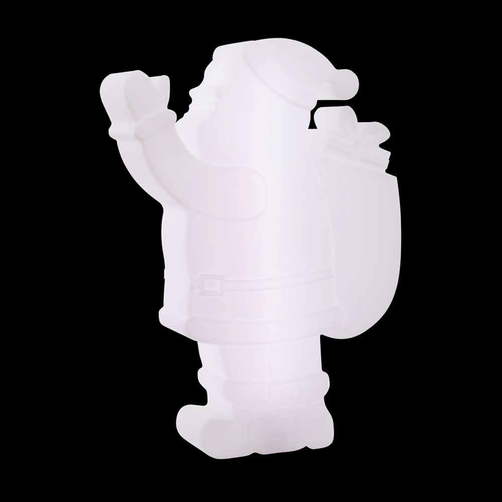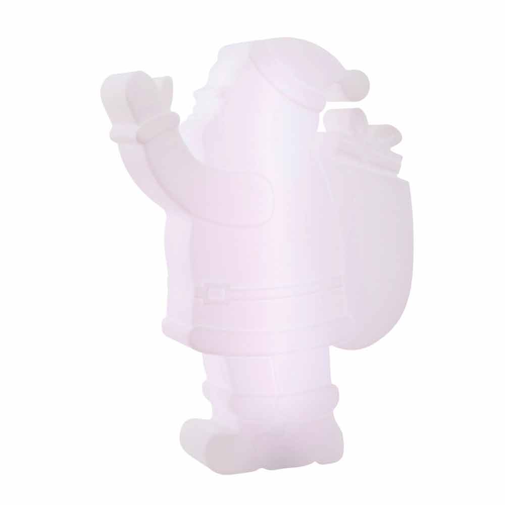 Candeeiro de pé em forma de Pai Natal em polietileno branco com LEDs multicoloridos para utilização interior ou exterior.