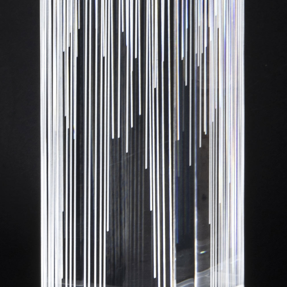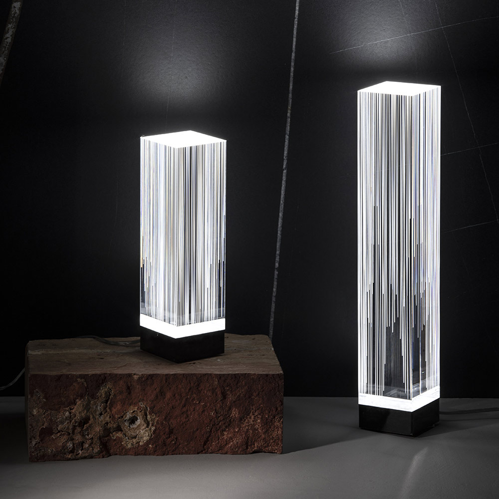 Lâmpada LED de bancada em cristal acrílico gravado a laser, 2 tamanhos fabricado na Itália.