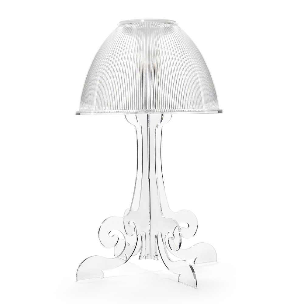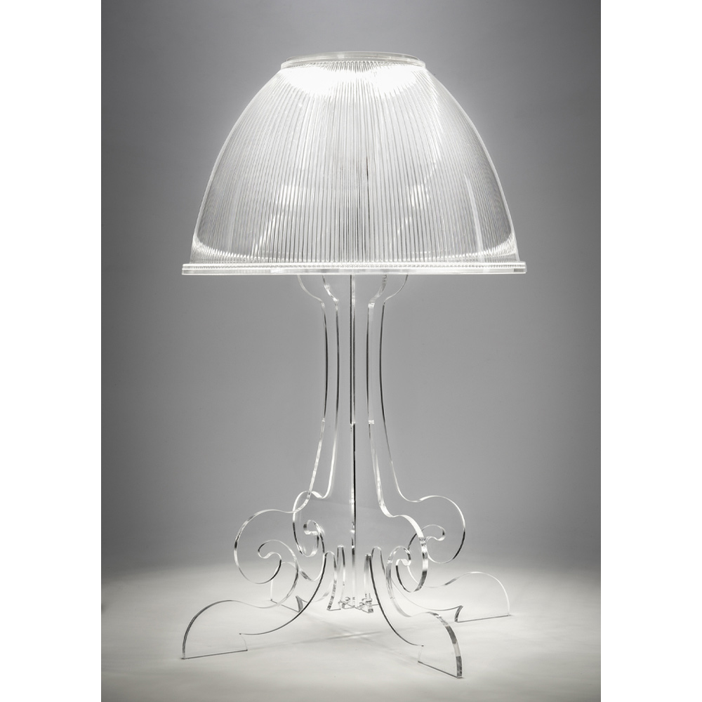 Candeeiro de mesa LED em plexiglass transparente Made in Italy.