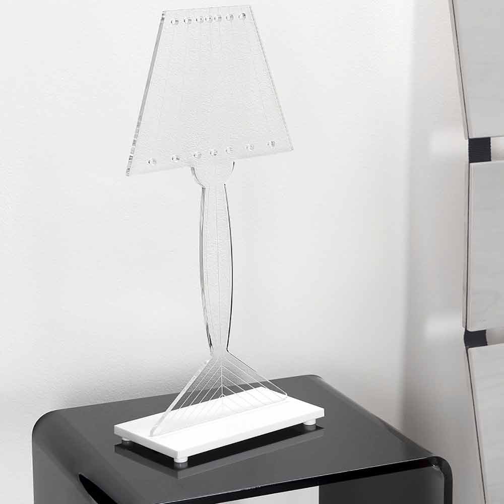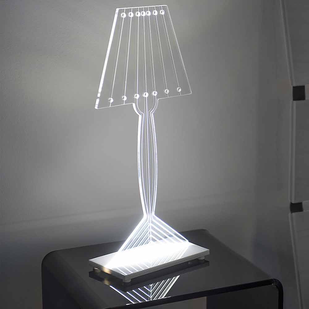 Elegante candeeiro LED de mesa / cabeceira moldada em plexiglass PMMA 100% em polímero virgem.