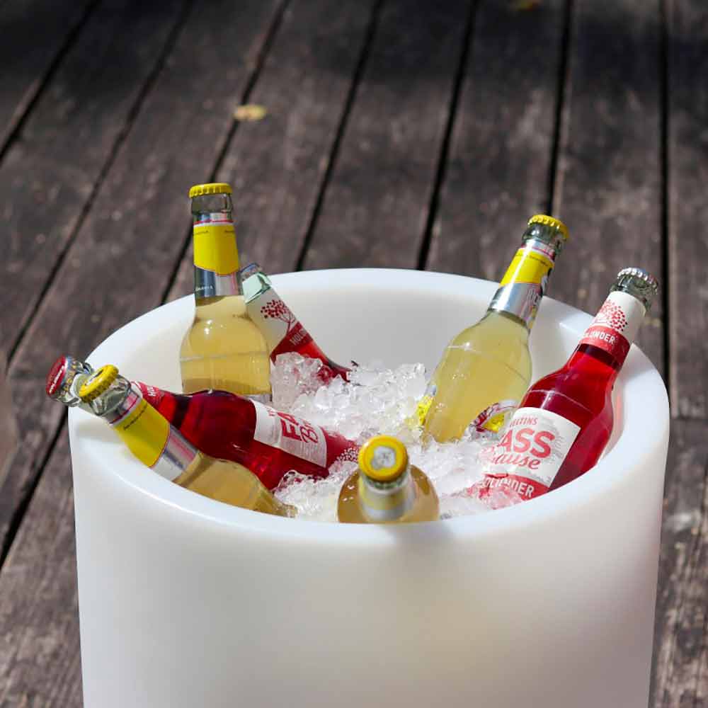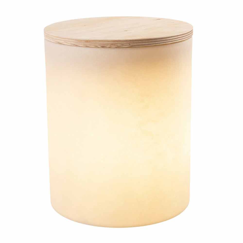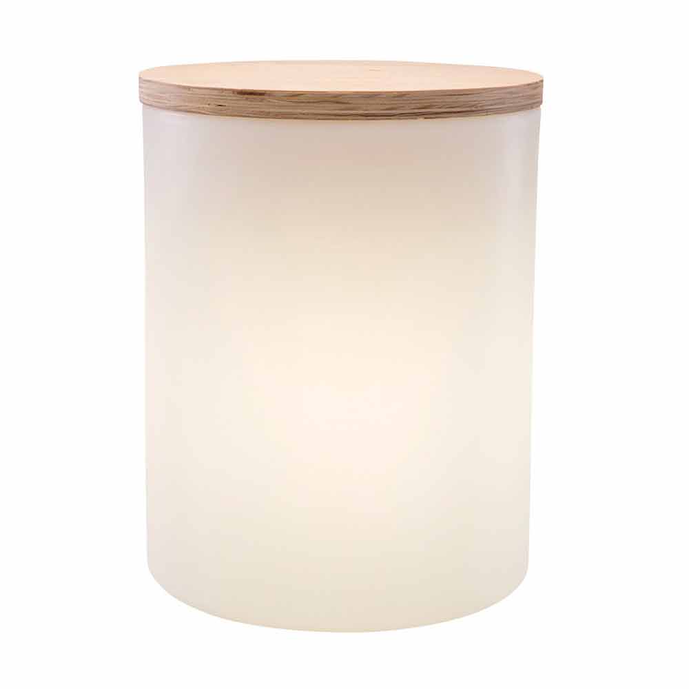 forma cilíndrica com tampo em madeira torna-o adequado para ser utilizado como assento, enquanto o sistema de drenagem inteligente também o torna adequado como vaso luminoso para plantas.