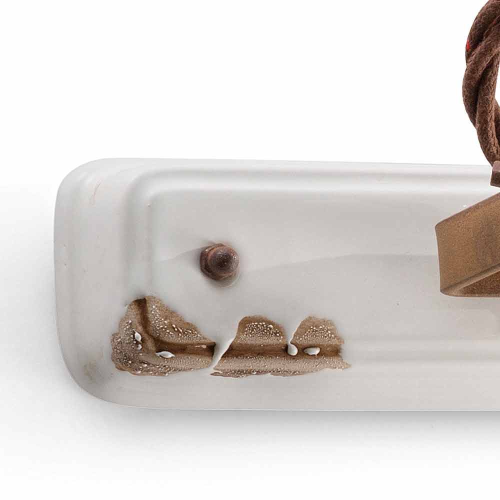 A peculiaridade desta lâmpada está no artesanato da cerâmica. A cerâmica, de fato, é decorada como se o tempo tivesse marcado seu caminho. A reprodução da erosão do tempo combinada com as superfícies brilhantes conferem um valor extra a este candeeiro de parede. Este efeito desgastado pelo tempo dá a Amelia um estilo vintage-industrial sofisticado.
