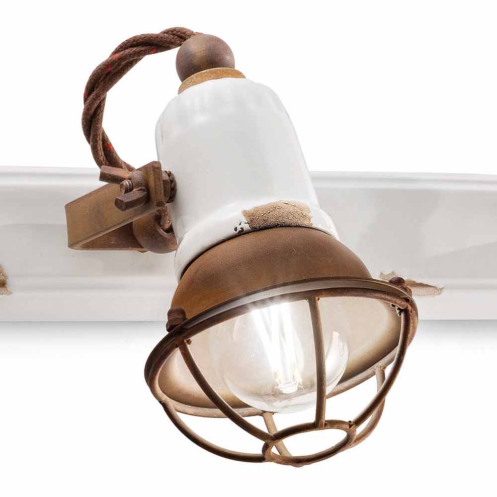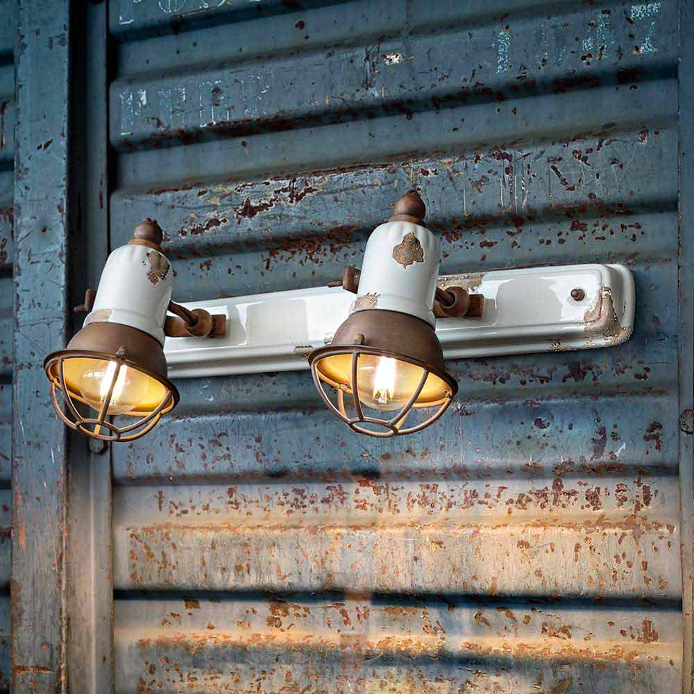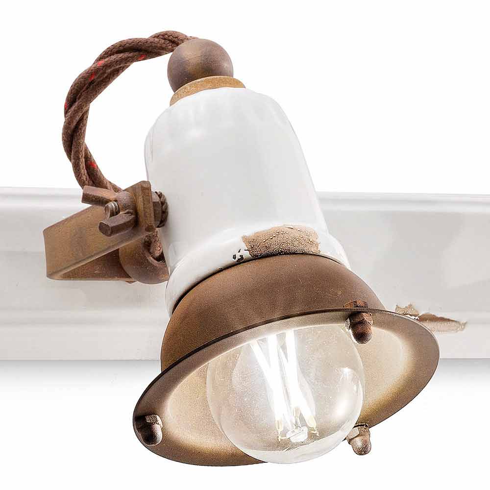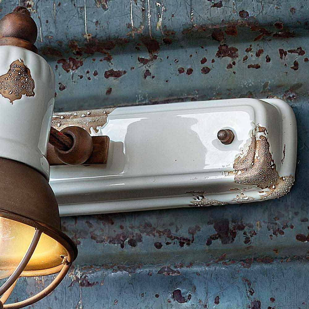 Luz direcional, cerâmica com acabamentos vintage em perfeita harmonia com o metal oxidado: um aplique único em seu estilo, com sabor antigo, perfeito para os ambientes mais refinados.