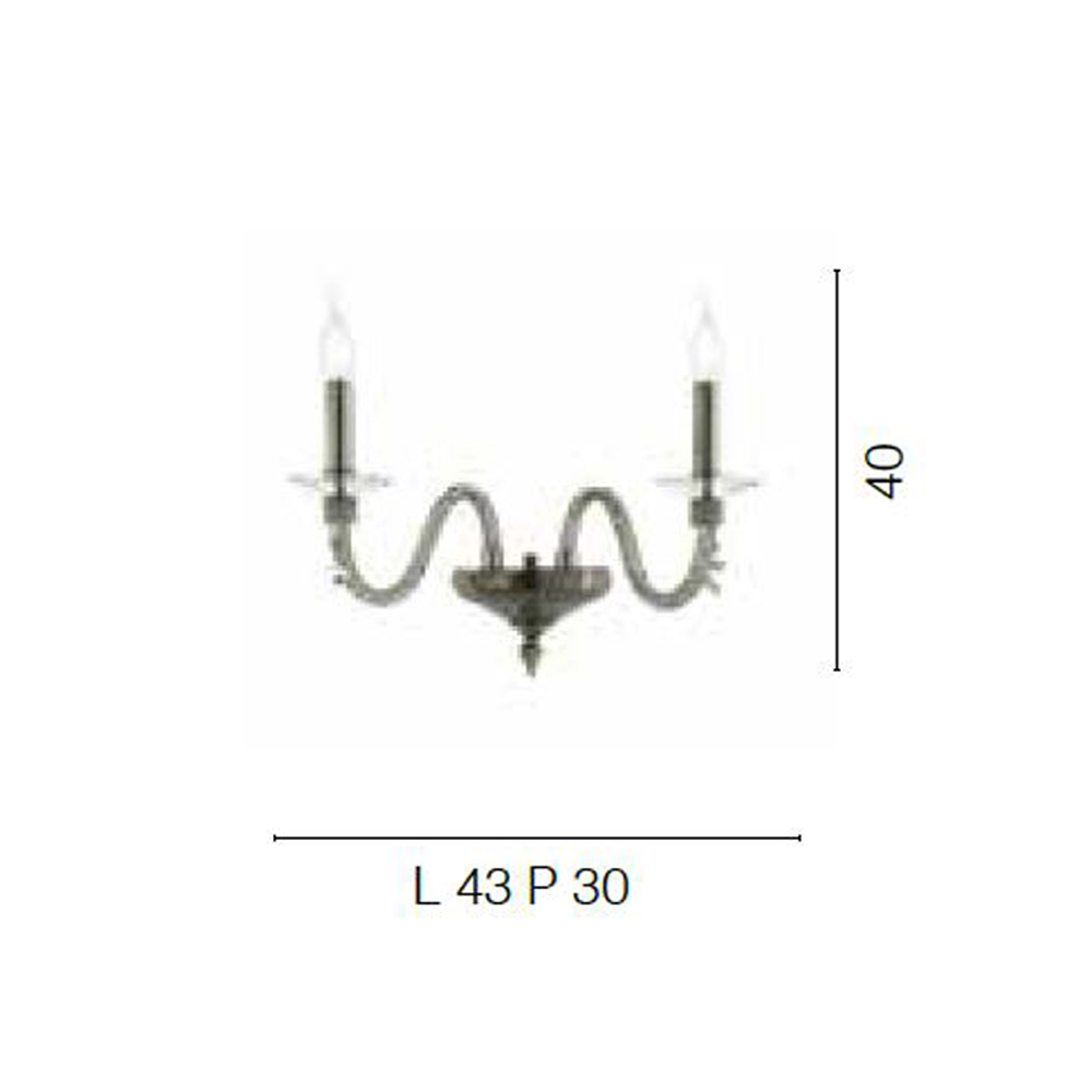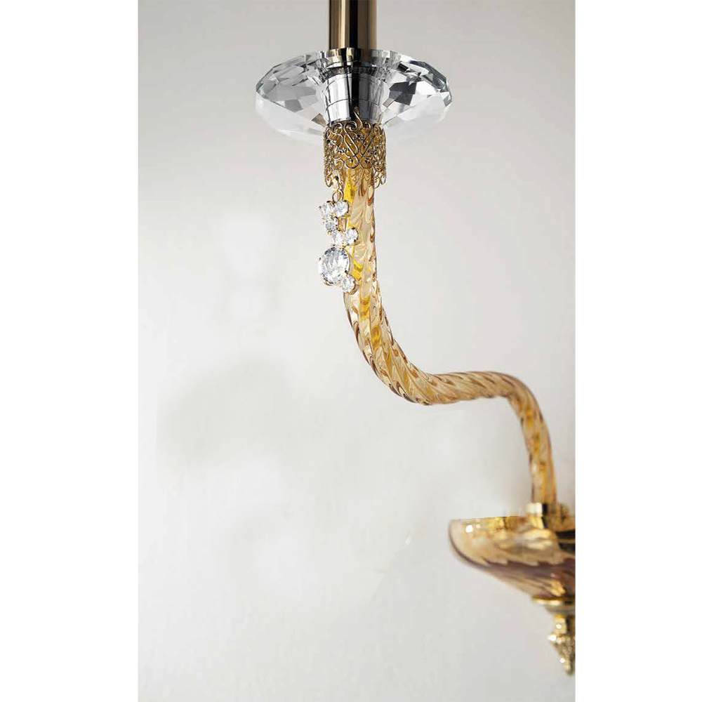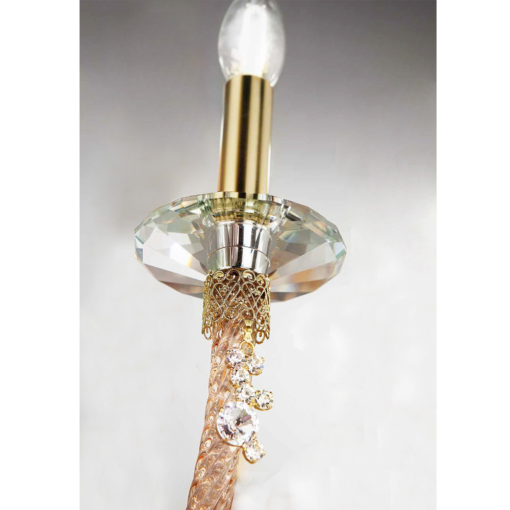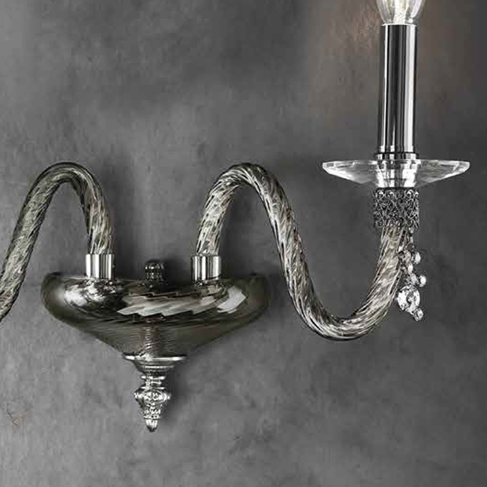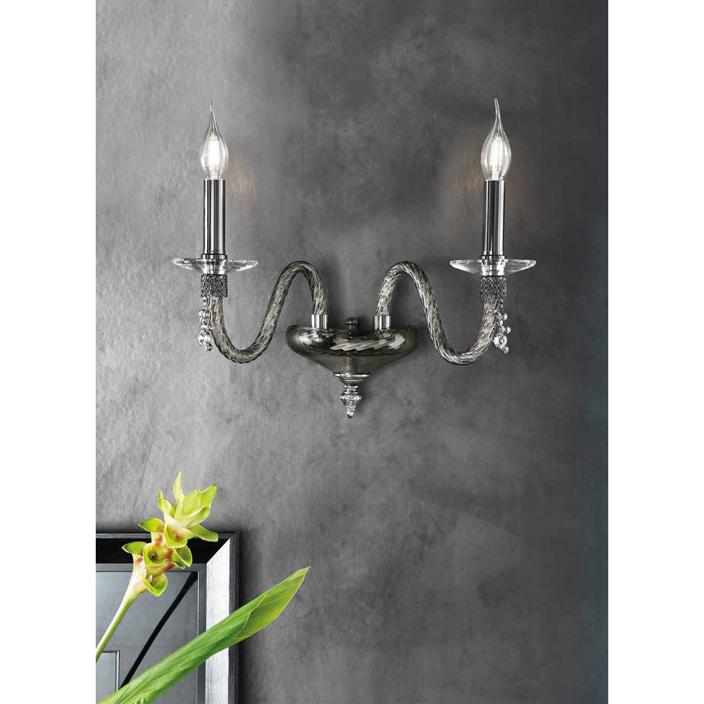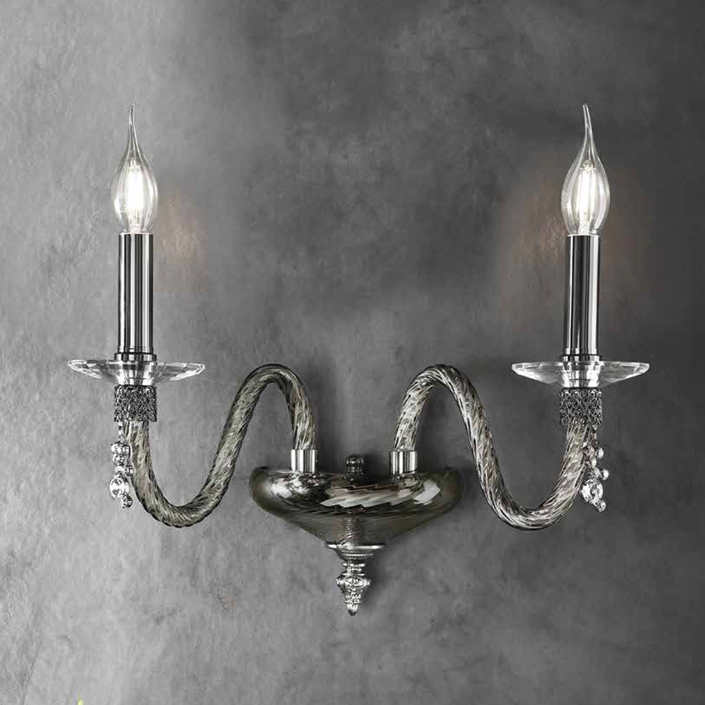 Aplique 2 luzes em vidro soprado e detalhes em joias, luxo italiano.