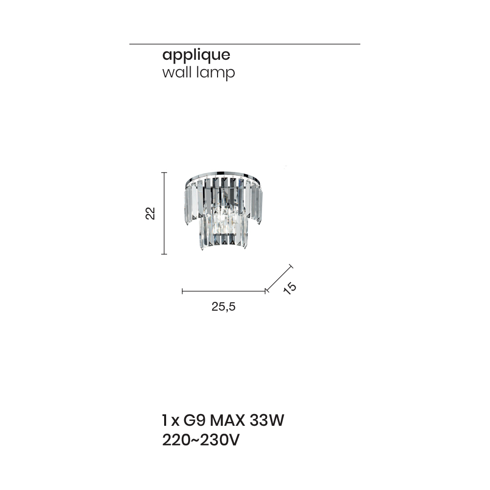 | Tipo de engate e potência | 1 x G9 MAX 33 W |