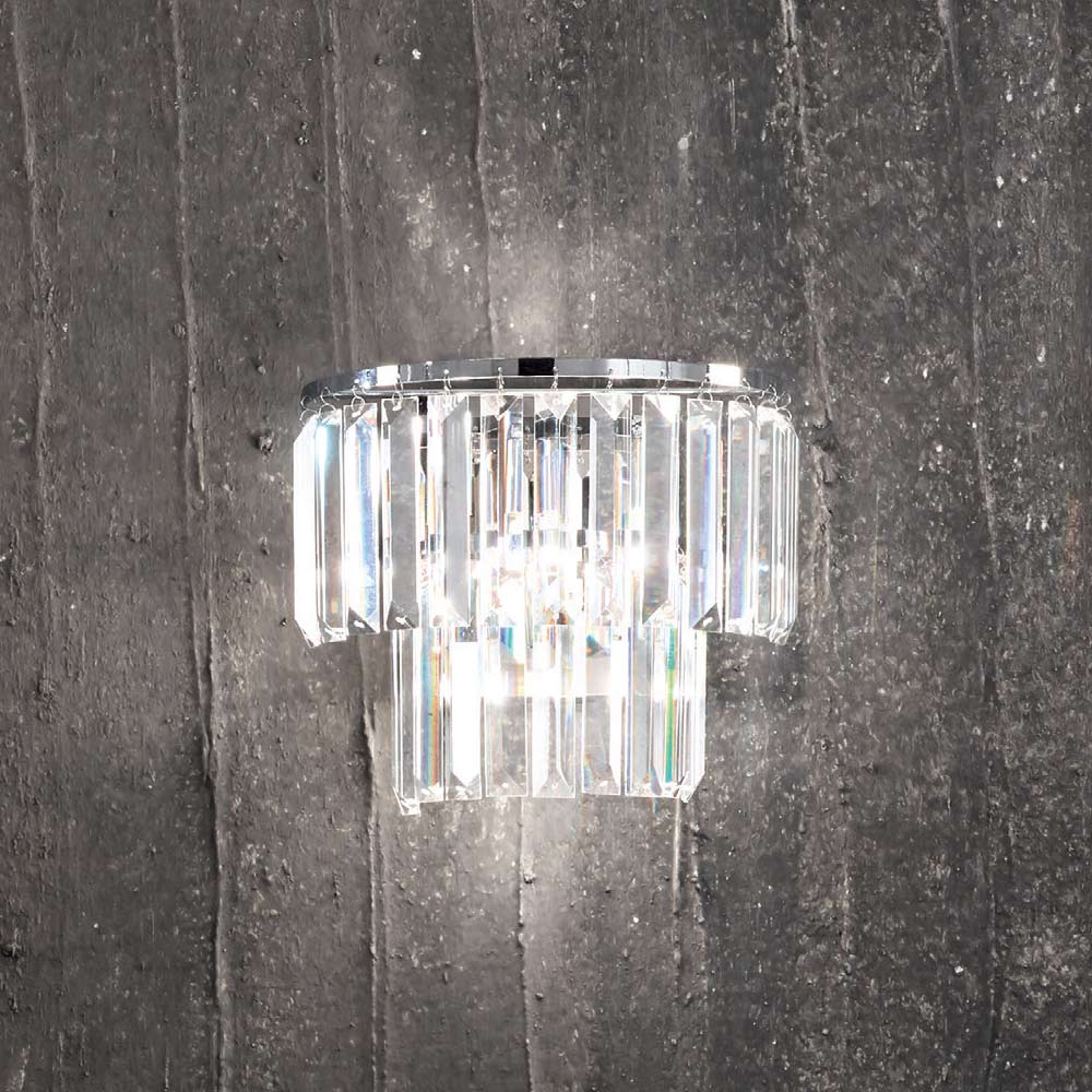 Este candeeiro de parede para sala de estar é capaz de criar ambientes luxuosos e importantes graças ao seu design precioso e brilhante.