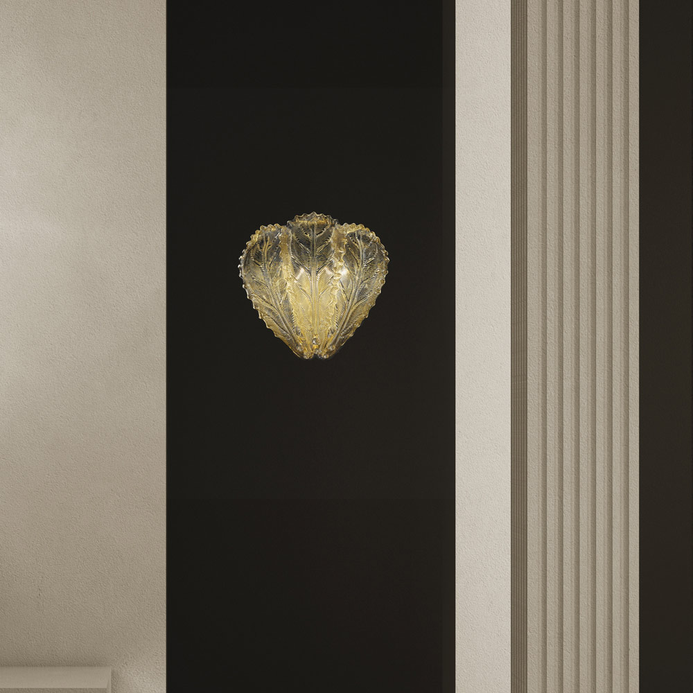 Candeeiro de parede artesanal em vidro Veneza e metal dourado brilhante Made in Italy.