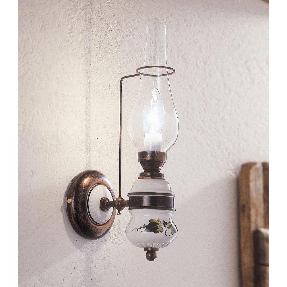 Luminária de parede em ferro e cerâmica pintada à mão com design vintage feito na Itália por Ferroluce.