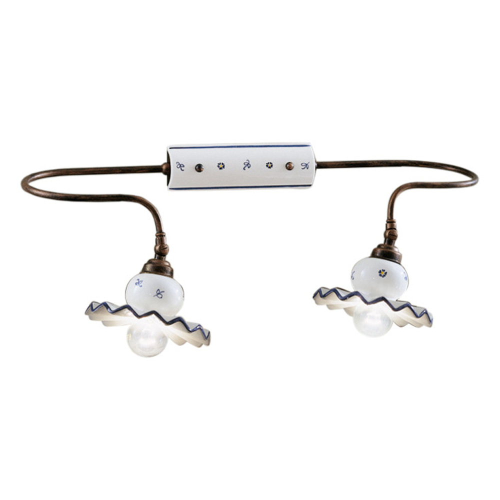 Candeeiro de parede de metal e cerâmica pintado à mão feito na Itália por Ferroluce.
