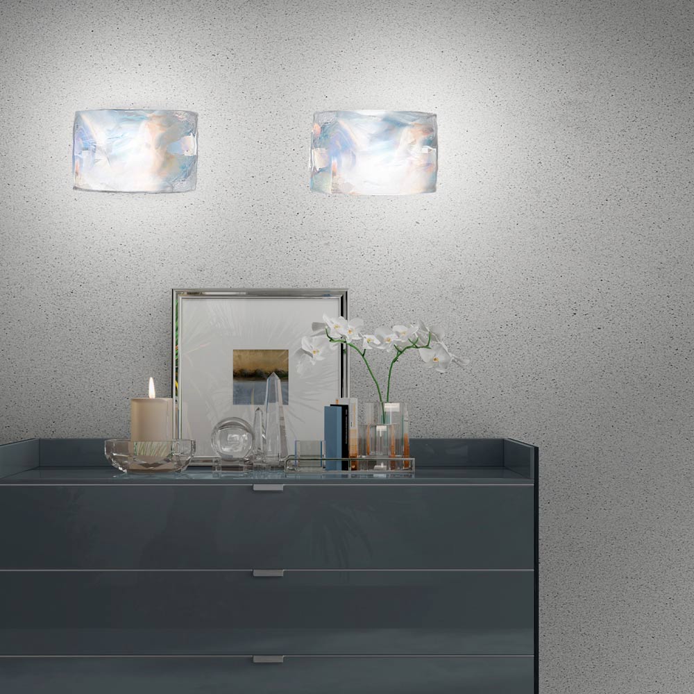 Luminária de parede artesanal em vidro veneziano com decoração de íris.