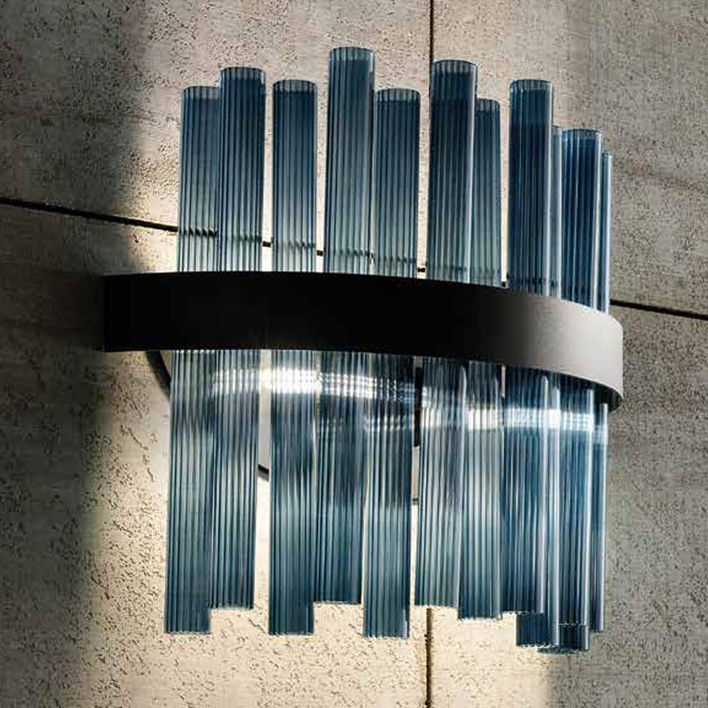 Luminária de parede de vidro listrado soprado artesanal de luxo fabricada na Itália.
