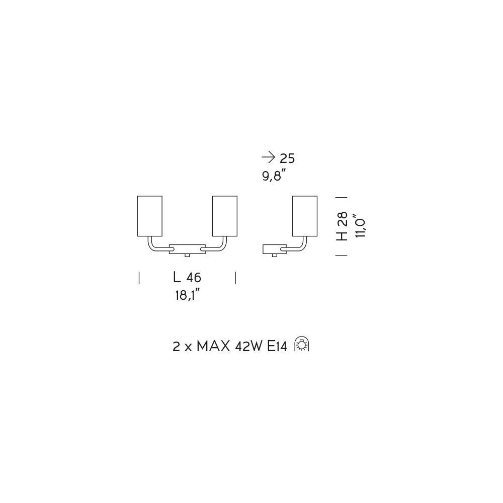 Lâmpadas (não incluídas) : 2 x MAX 42W E14