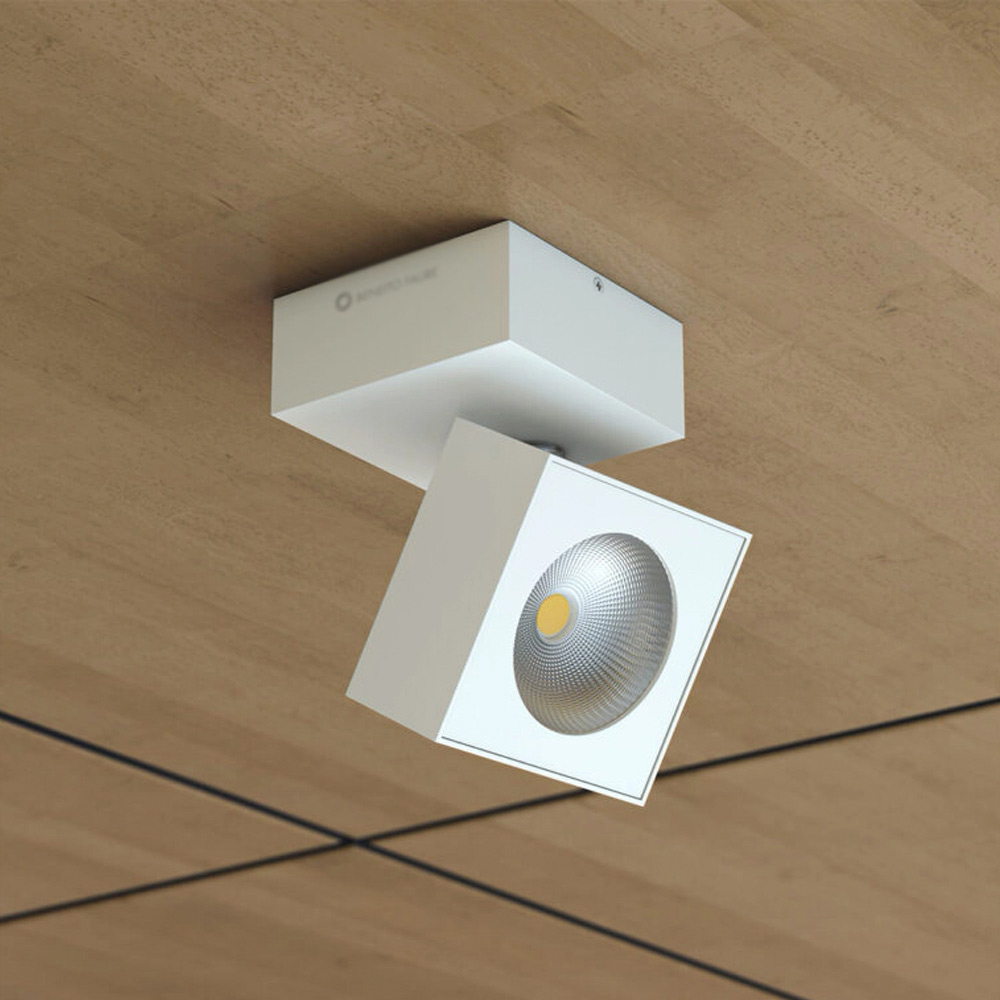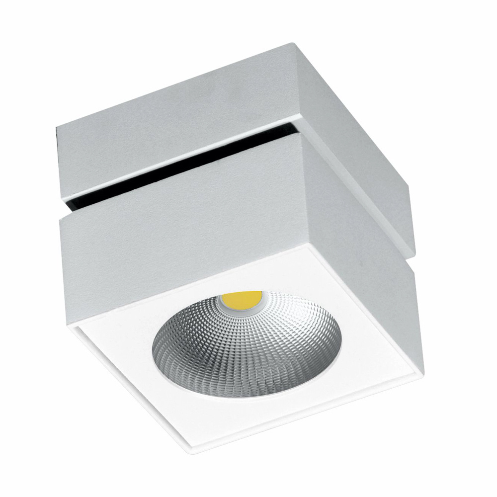Refletor LED decorativo para parede ou teto com estrutura quadrada de alumínio.