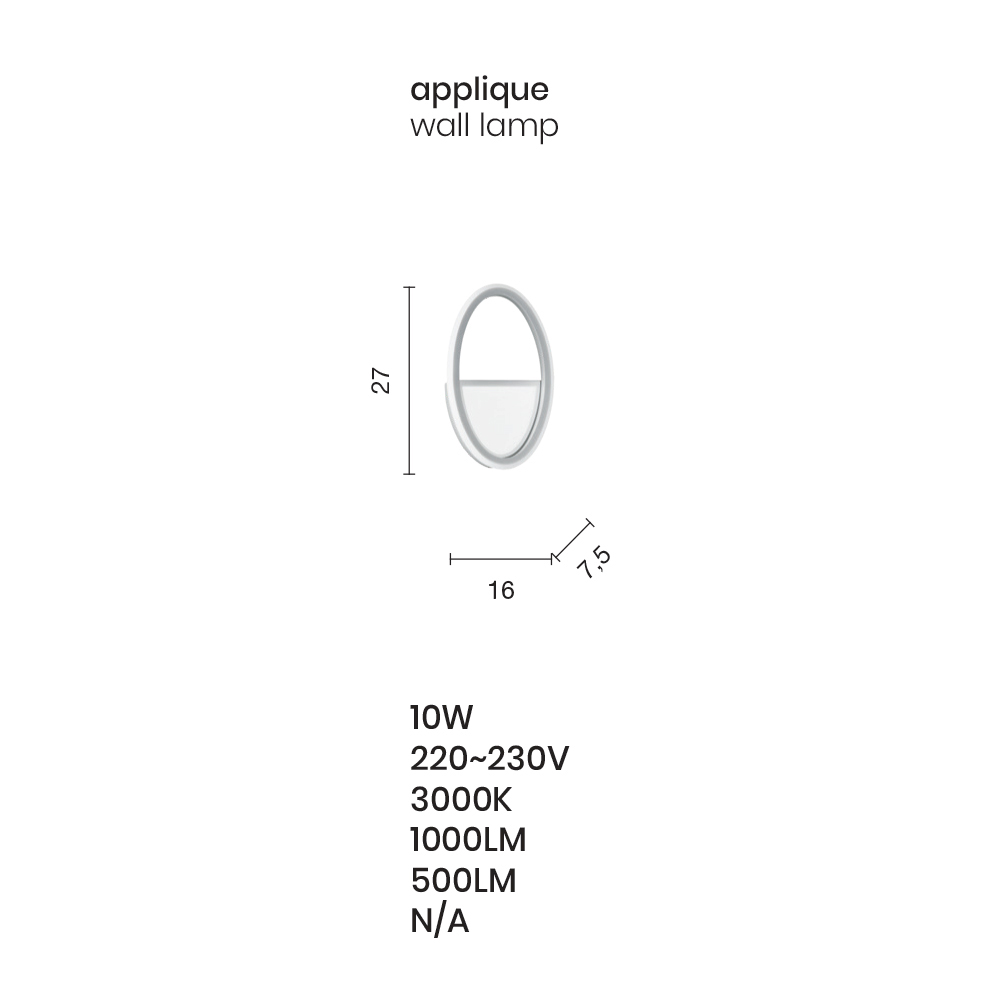 Luminária de parede em metal com difusor em acrílico e LED silicone.