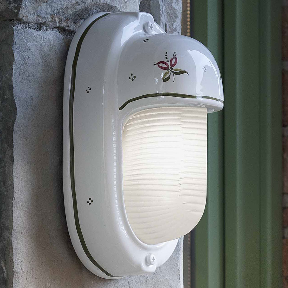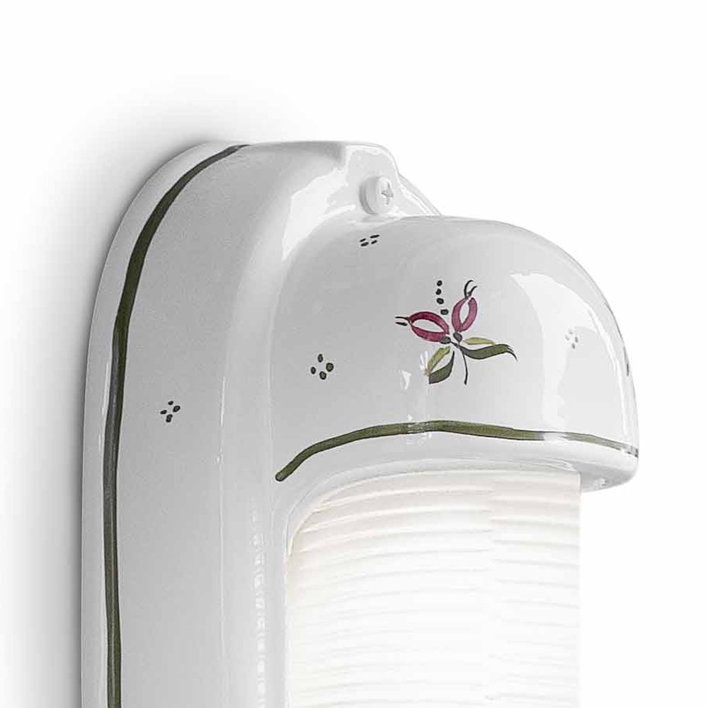 Este candeeiro de parede de jardim vertical é inteiramente feito de cerâmica decorado com flores pintadas à mão para um estilo clássico e harmonioso entre forma e cores.
