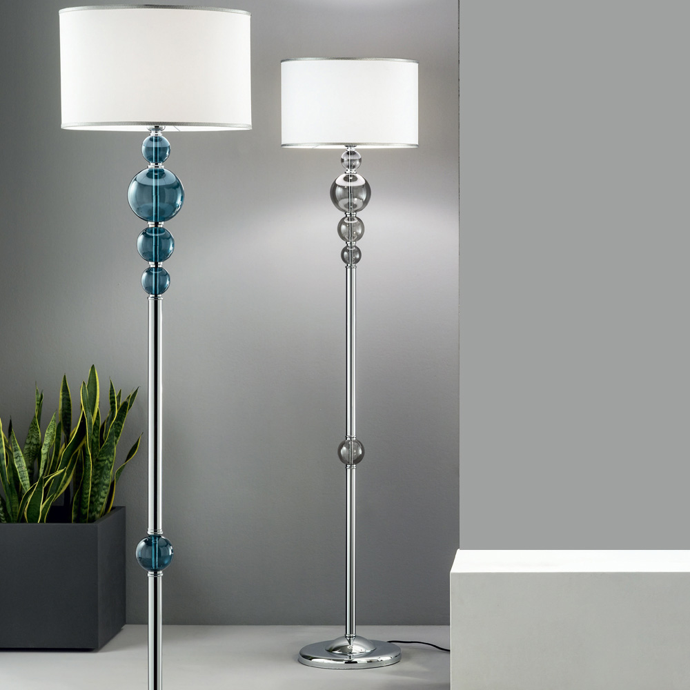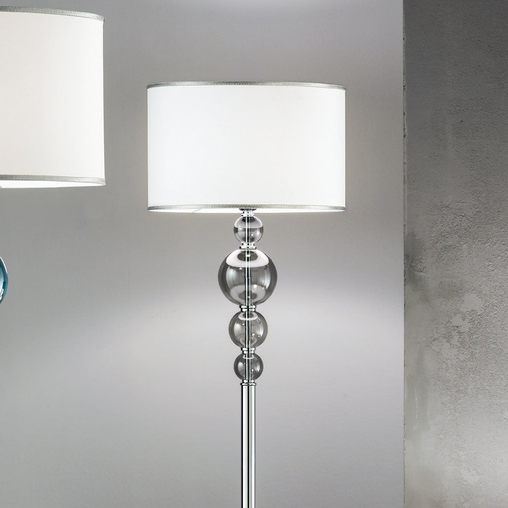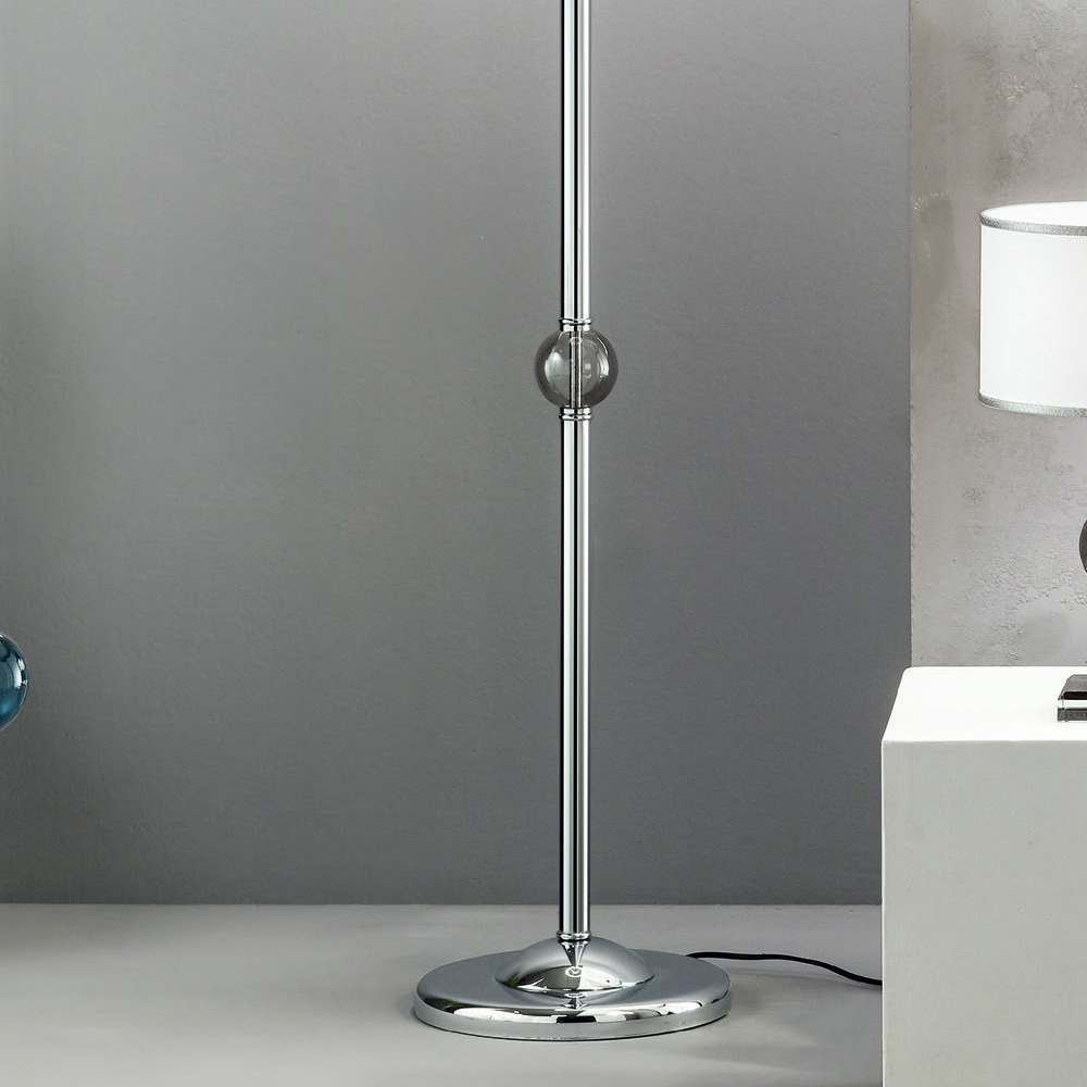 Candeeiro de pé clássico e elegante em metal cromado e vidro feito à mão, fabricado na Itália.