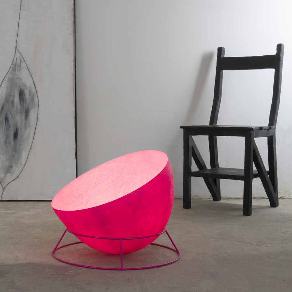 O moderno candeeiro H2o F Nebulite da colecção Luna de In-es.artdesign é composto por uma estrutura de aço colorida e um difusor de luz circular também colorido em Nebulite®, um material inovador composto por resina e fibra, cujos veios conferem à lâmpada uma efeito "lunar" particular.