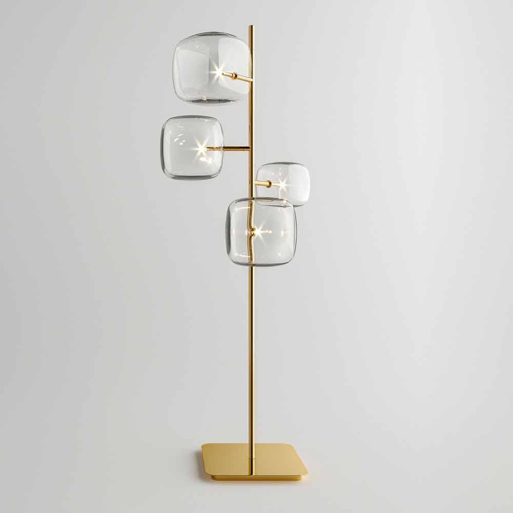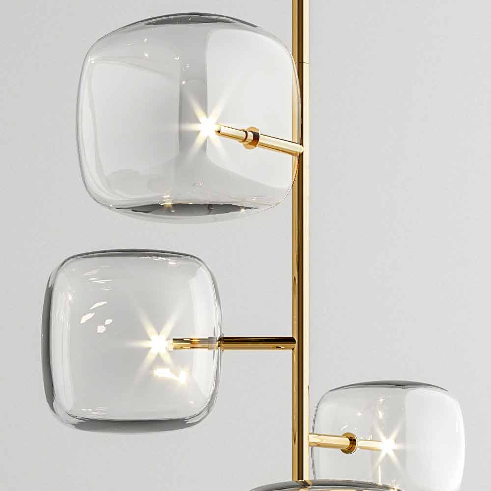 Candeeiro de pé de design em metal polido com cubos de vidro arredondados Fabricado na Itália.