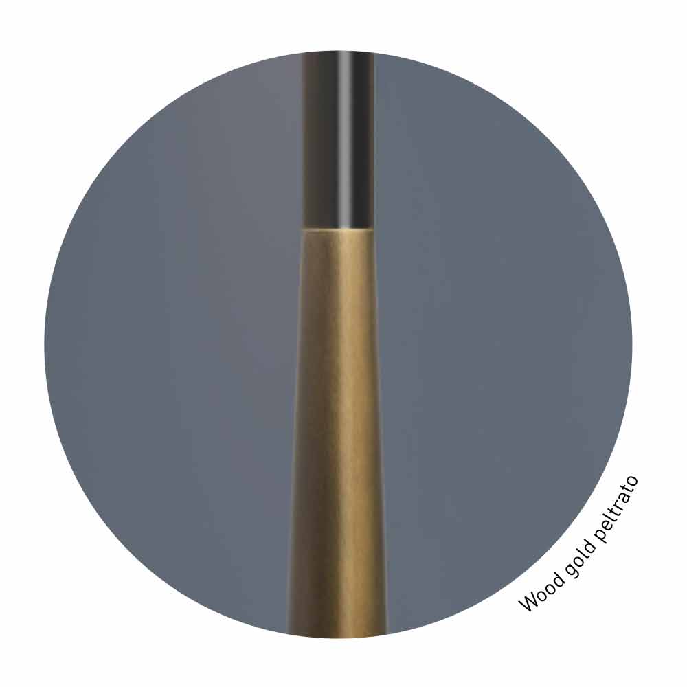 Candeeiro de pé de design em metal e madeira com abajur de organza Made in Italy.
