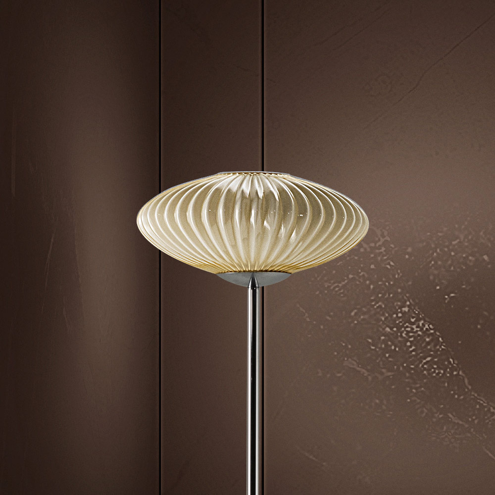 Candeeiro de pé feito à mão em vidro Veneza com processamento estriado.