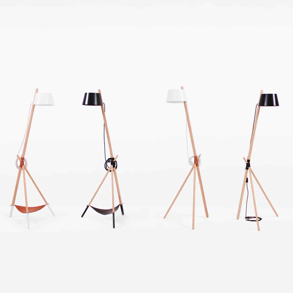 estilo moderno capaz de cobrir o papel mais tradicional de fonte de luz da divisão, mas também um elemento puramente decorativo capaz de chamar a atenção. Sua estrutura é composta por uma base de três pés em madeira maciça de faia unida por um cordão de couro vegano enquanto o abajur é em metal laqueado e possui um difusor 100% algodão que cria um ambiente aconchegante e acolhedor. O candeeiro também está disponível na variante com uma prateleira prática e funcional também em pele vegana, ideal para colocar objectos como livros ou revistas para ter sempre à mão.