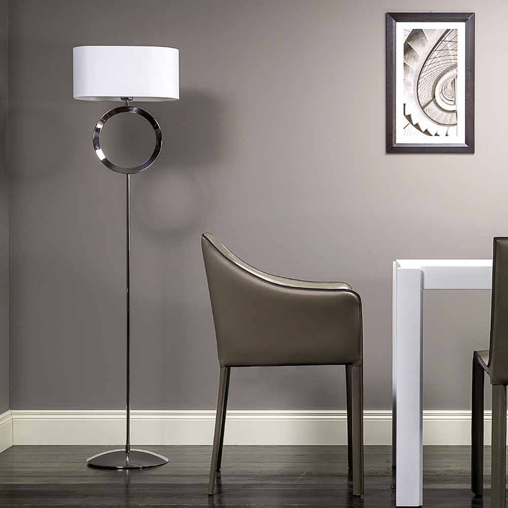 A lua é uma lâmpada de assoalho com um design moderno. A estrutura é feita de aço, enquanto o abajur é branco. Graças ao seu design versátil, pode ser colocado em qualquer ambiente, desde a casa até o escritório.