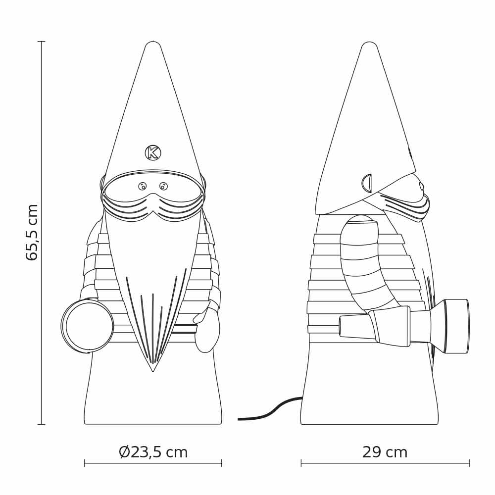 Este candeeiro de pé para exterior original e único pretende entreter com a sua forma espirituosa e divertida que representa o oitavo anão de Branca de Neve. É um complemento irônico em gardo caracterizar os ambientes internos e externos com bom gosto e estilo para o máximo de contemporaneidade e um toque de exclusividade.