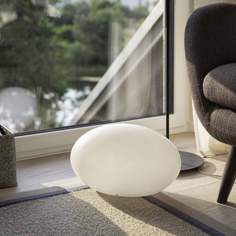 Candeeiro de pé com ataque à sua escolha, disponível em várias cores com design oval e moderno para interior ou exterior.