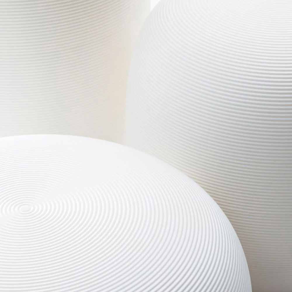 O candeeiro decorativo com uma textura mínima está disponível em várias cores. Os Pandora são para cada versão em três tamanhos diferentes: pequeno 31x55 cm, médio 44x44 cm, grande 40,5x70 cm.